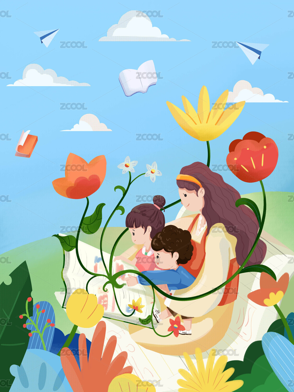 教师节读书日卡通插画