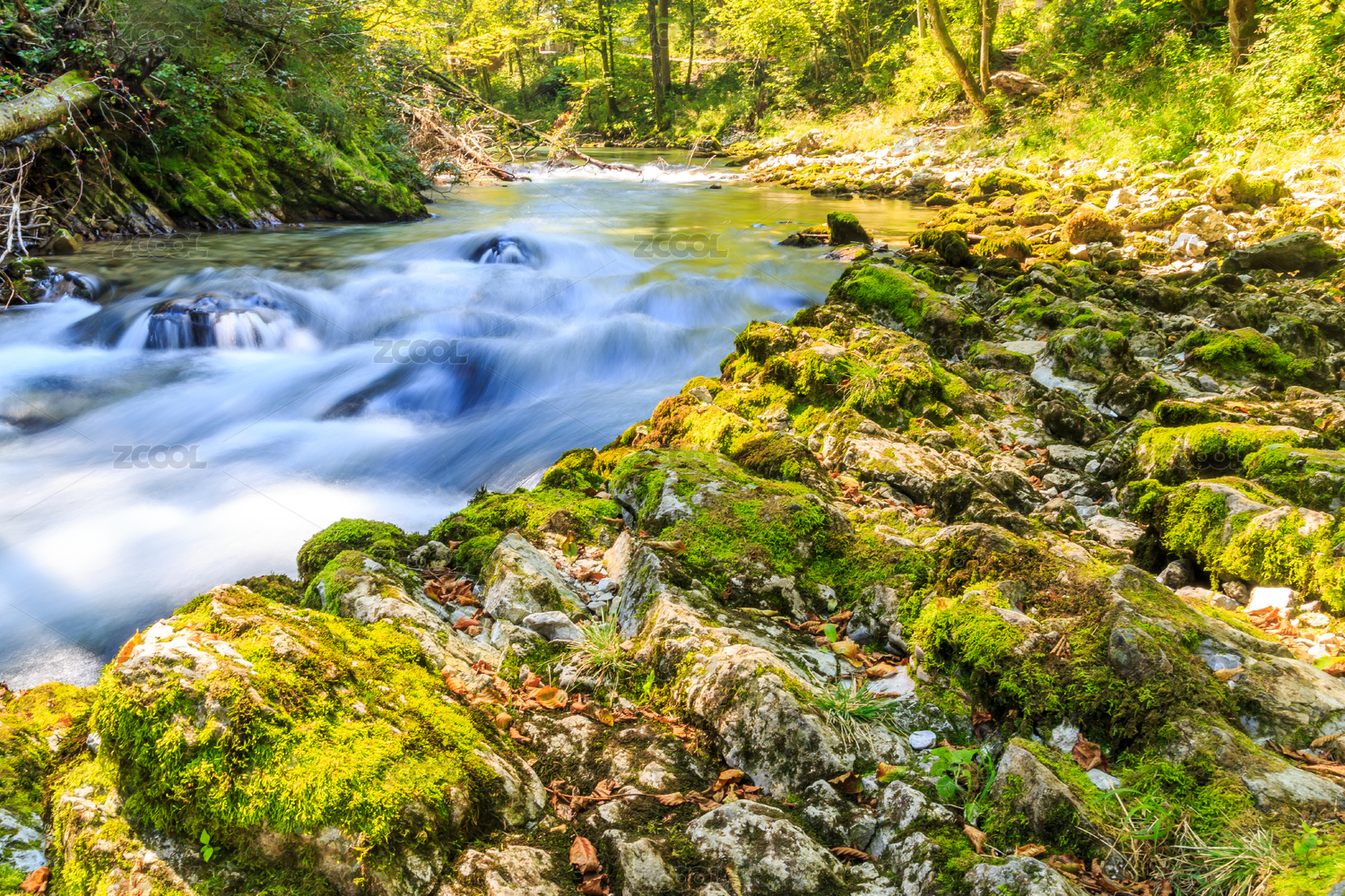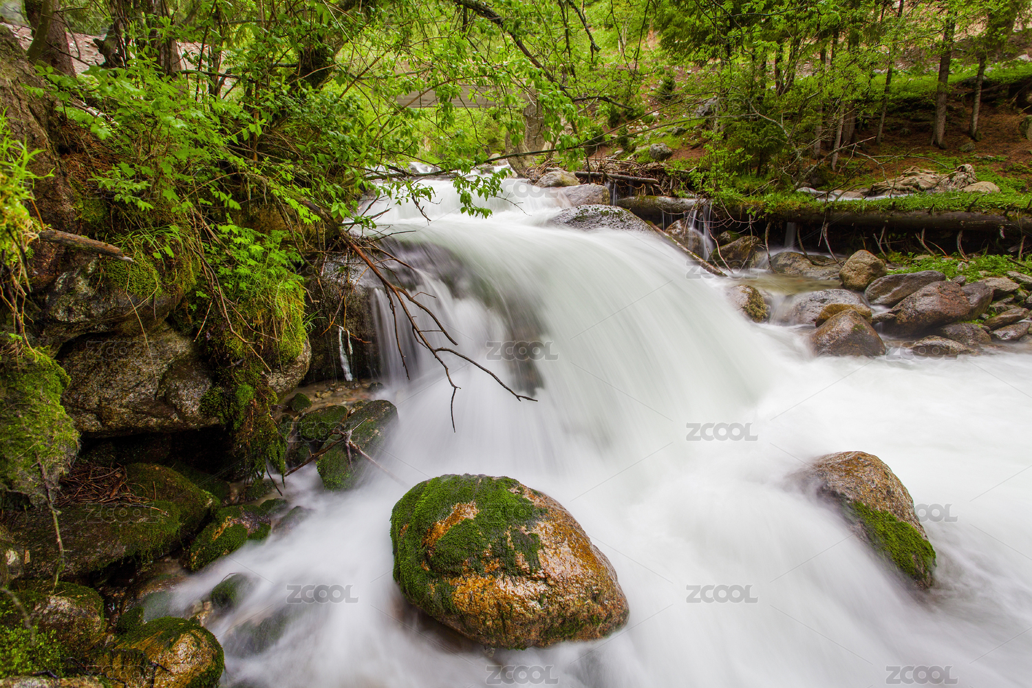 宁夏固原六盘山国家森林公园山谷溪流风光
