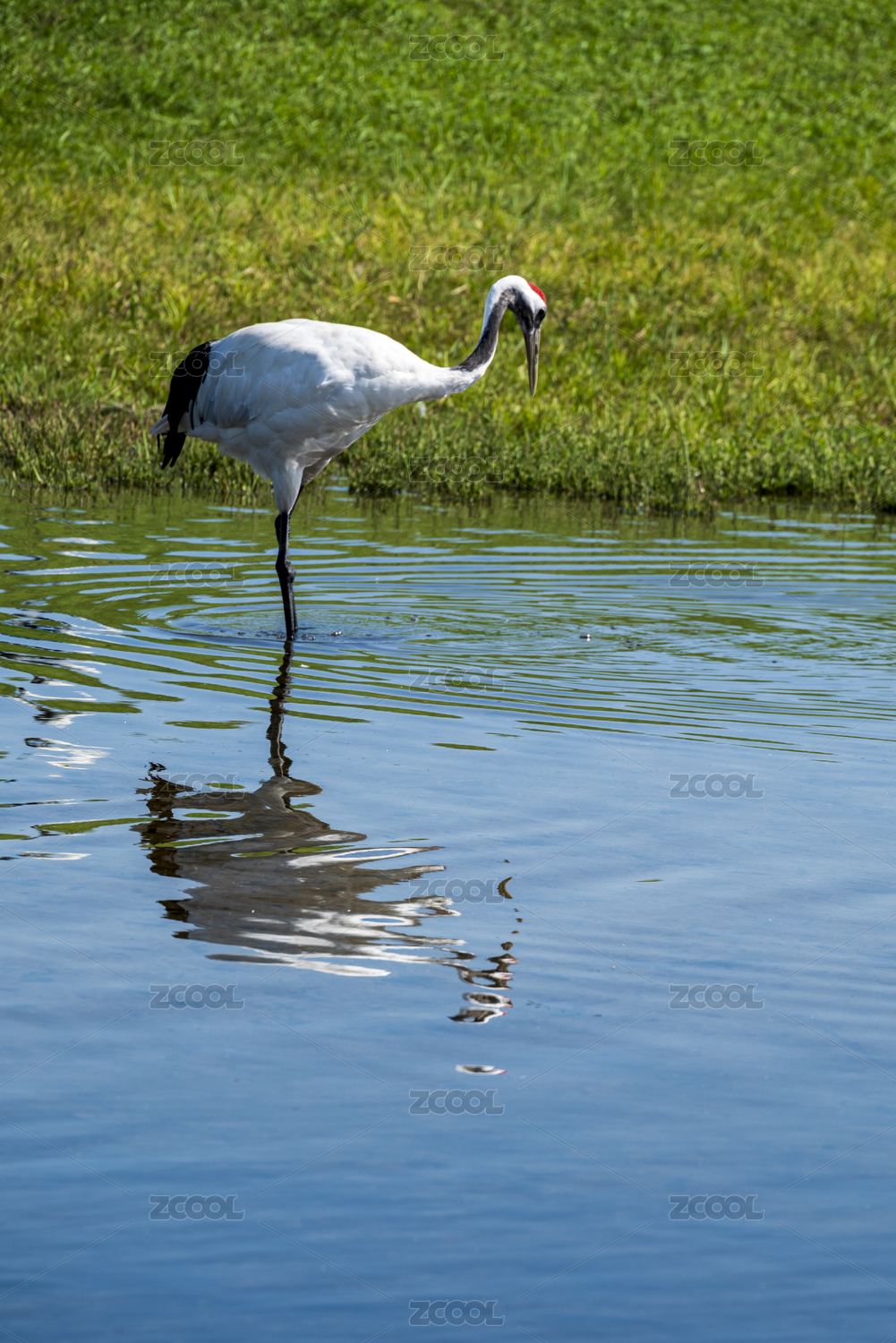 湖中寻食的丹顶鹤