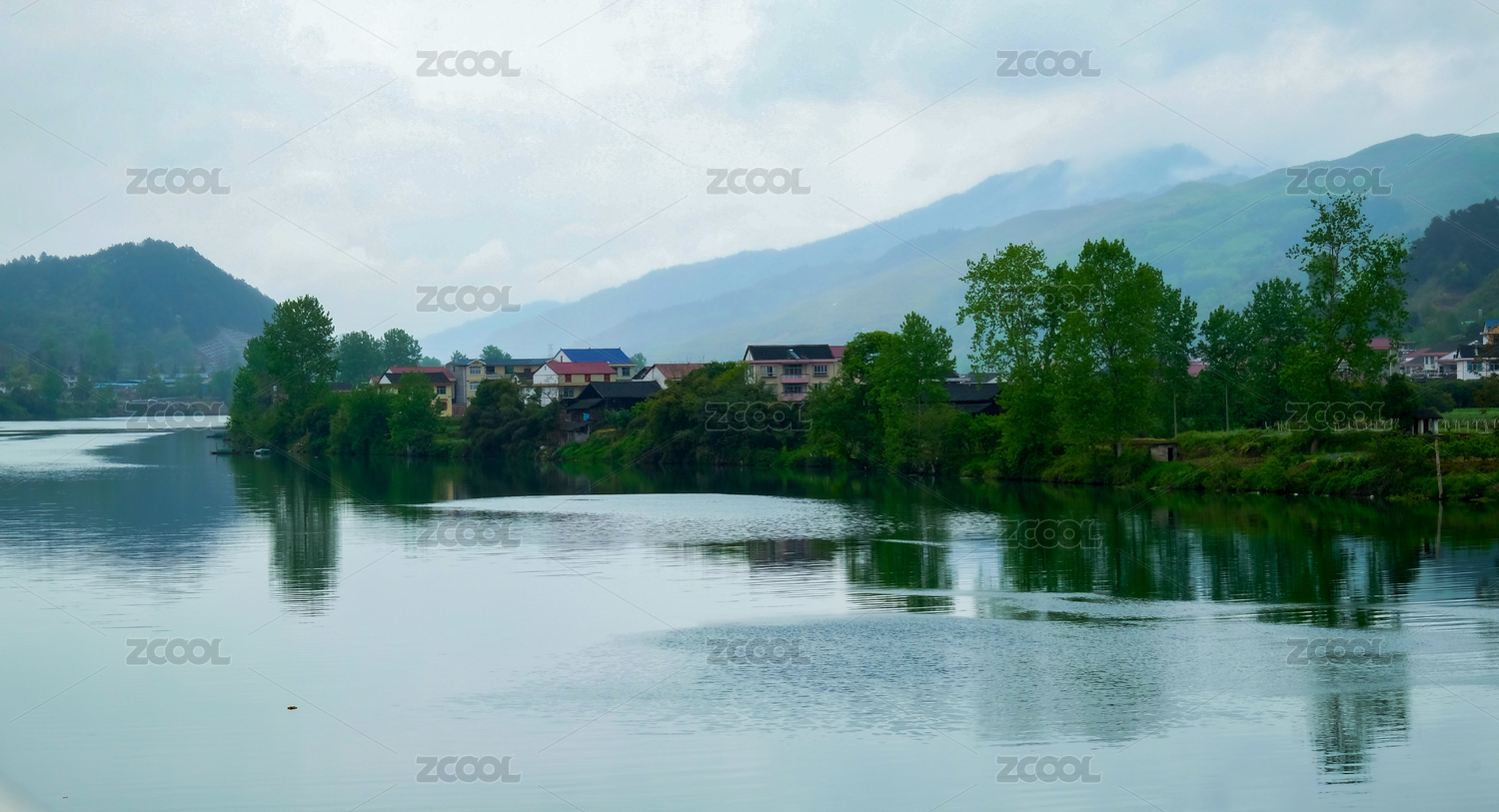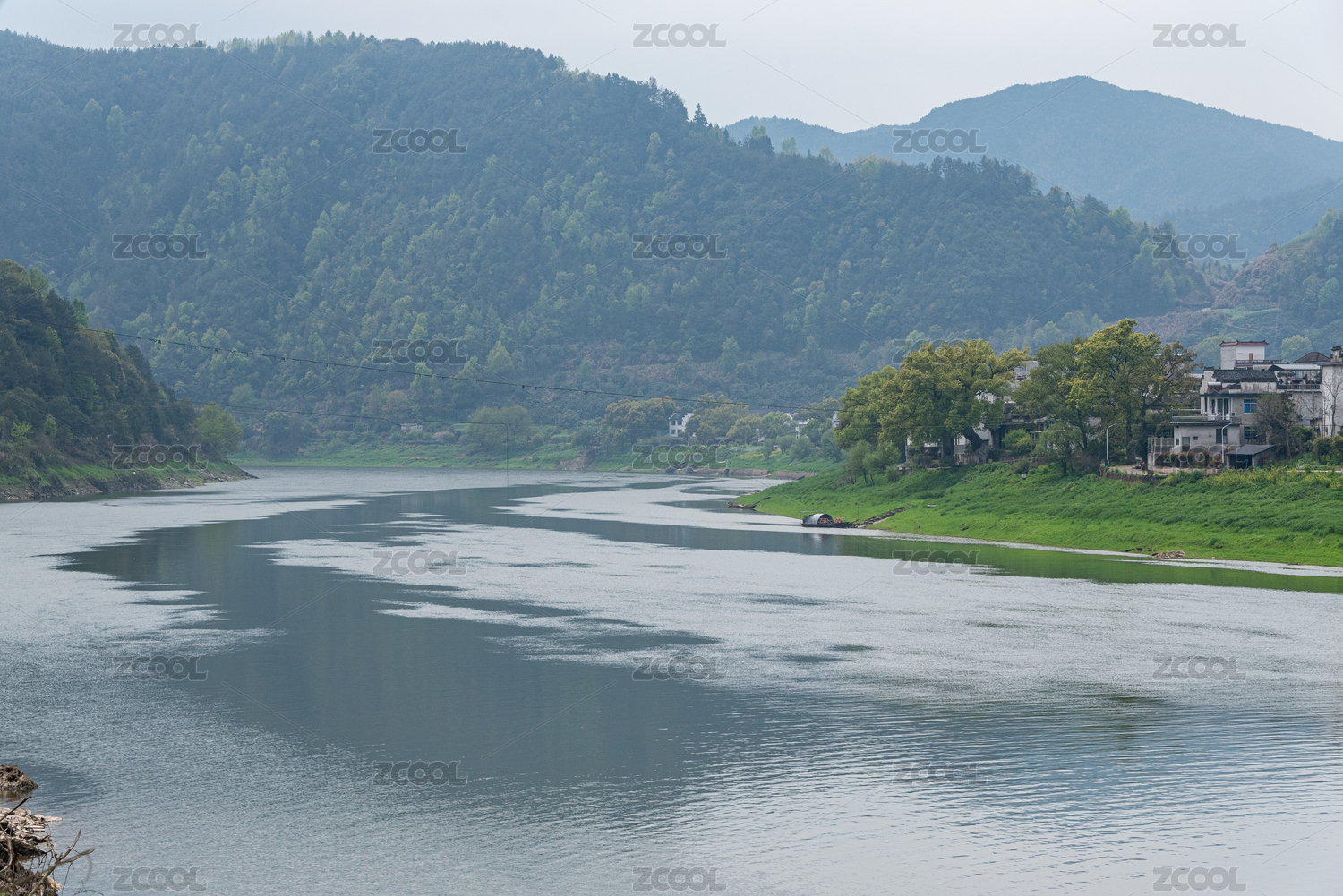 中国江西景德镇蓝天白云下昌江源头沿岸山水风光