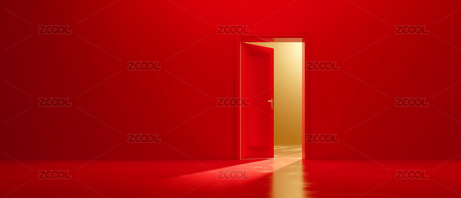 红色调极简空间开门迎光背景