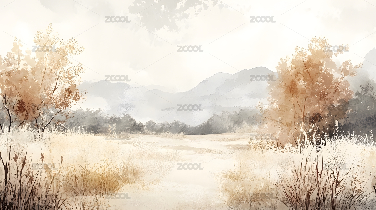 清新水彩风景景观背景海报装饰画