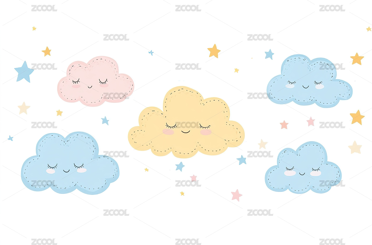 绿色,插画,天空,环境,云朵,微笑,可爱