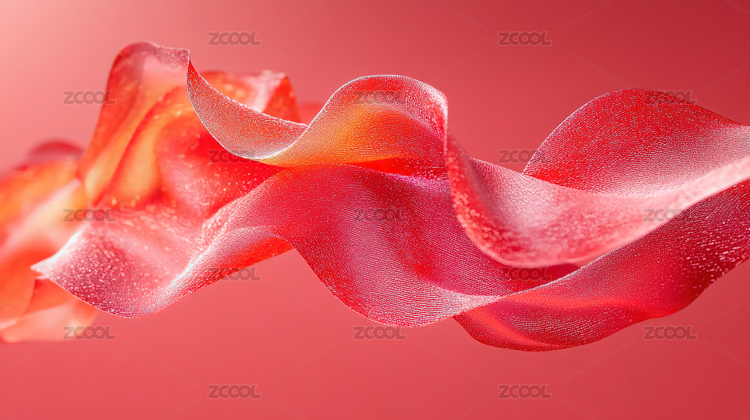 红色绸缎飘带,流畅曲线丝滑柔顺