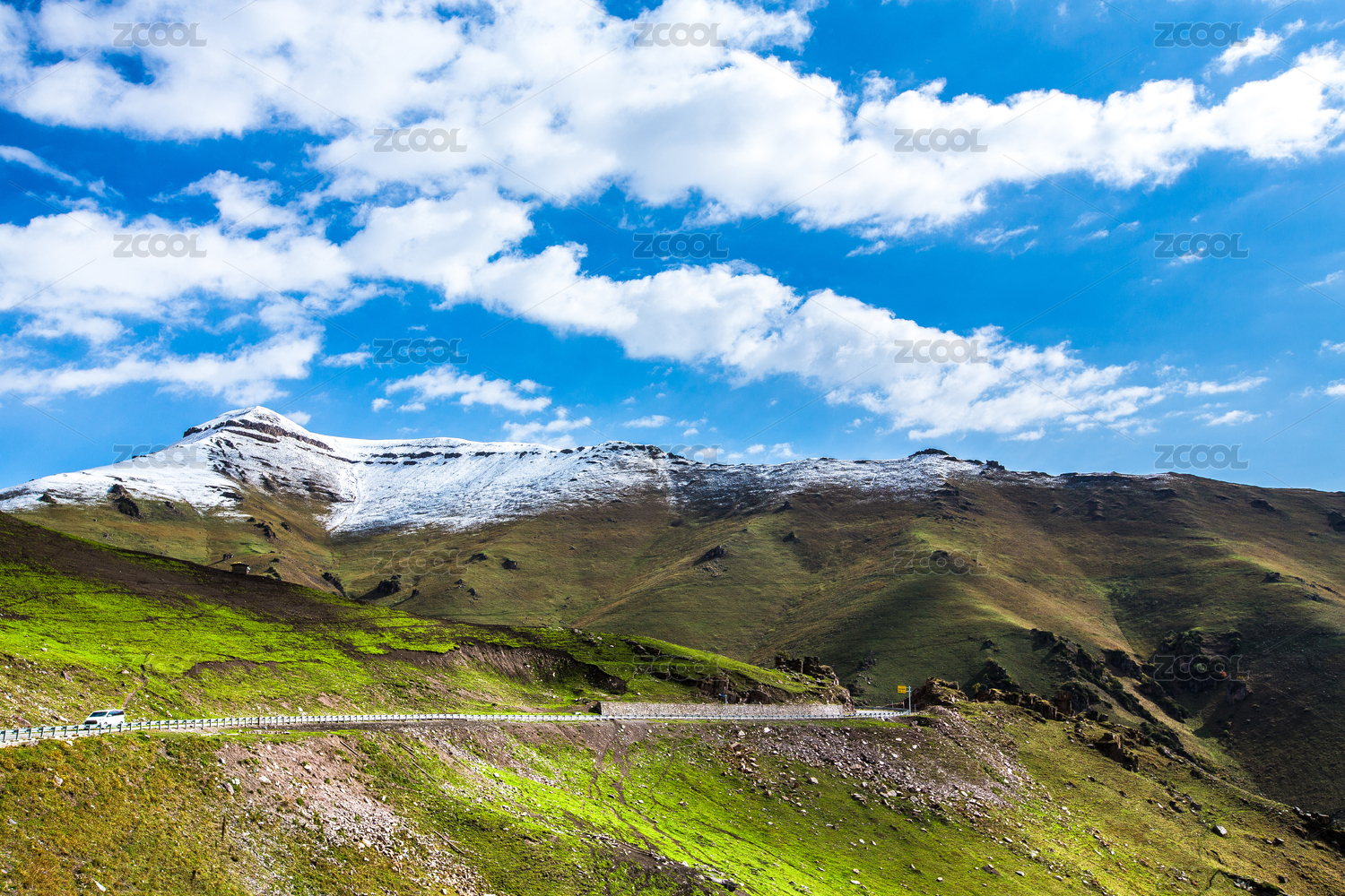 中国新疆夏季蓝天白云下G217独库公路沿途高山草原