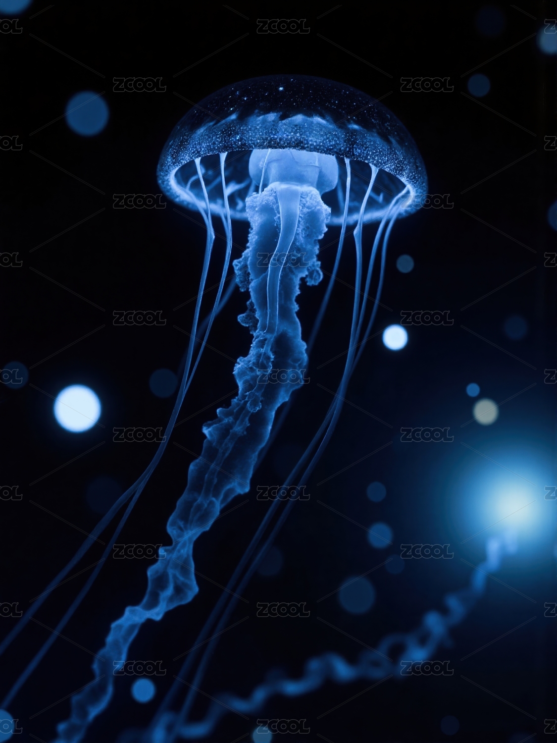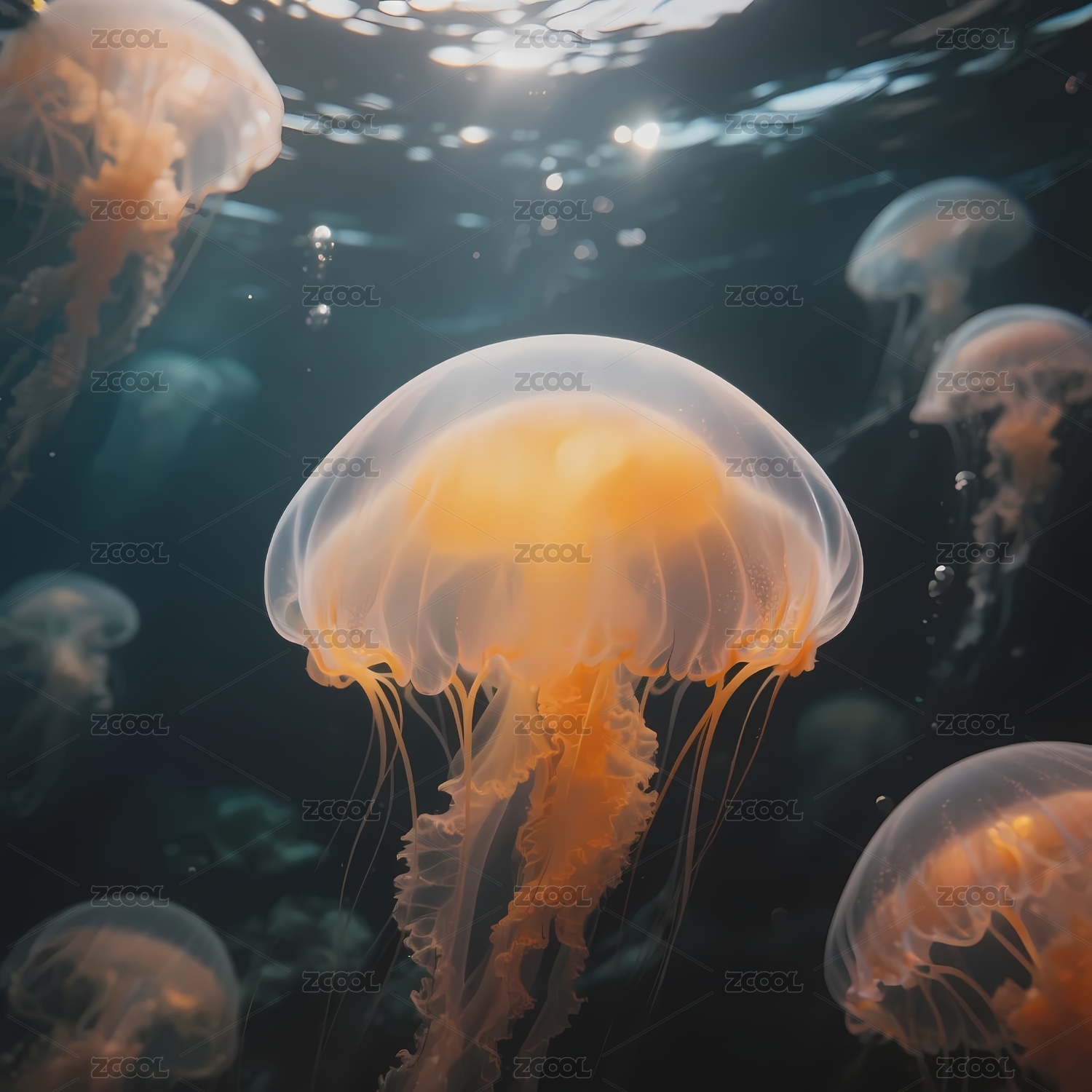 蓝色水,水母,蓝色,橘红色水母,飘逸水母,海洋生物,一群水母