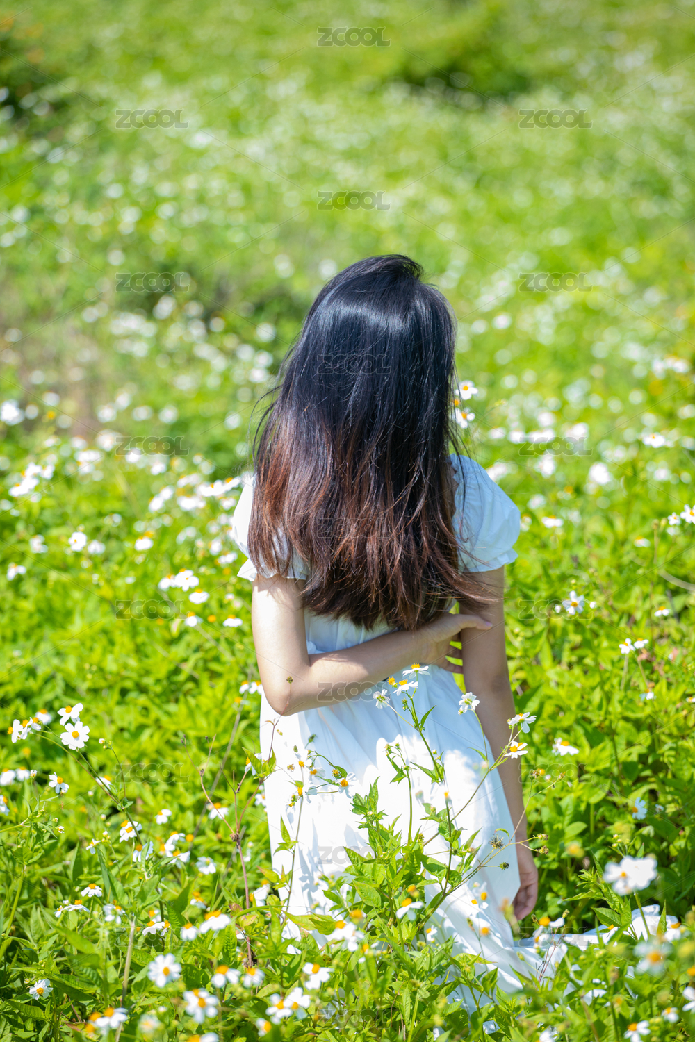 穿白色连衣裙的少女