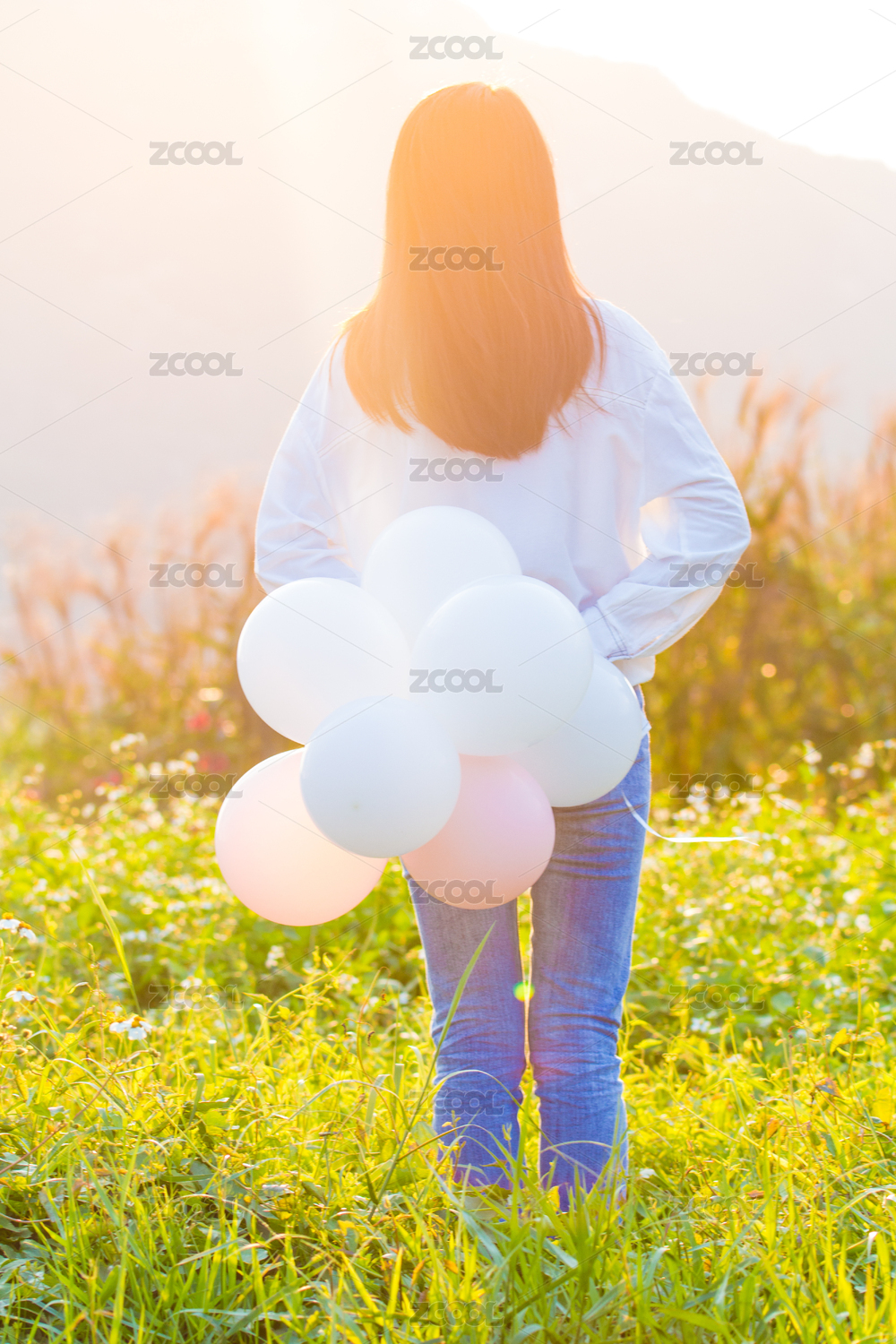 草地上的女生