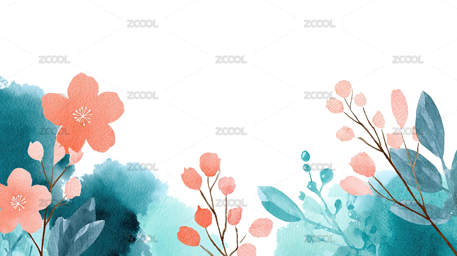 抽象花卉绿色叶子和橙色油漆飞溅背景