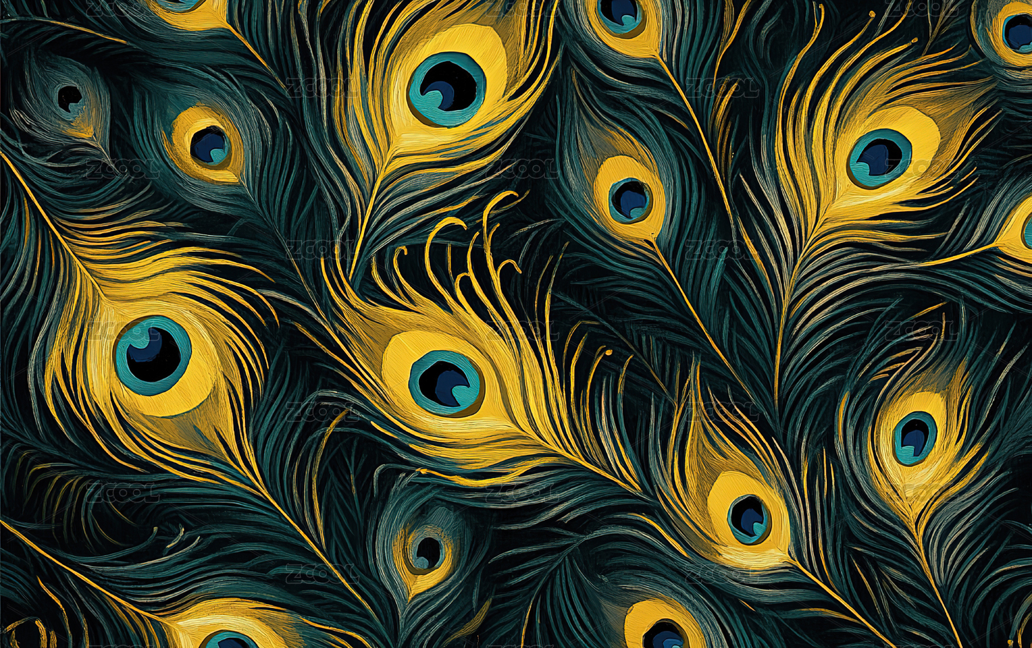 孔雀羽毛无缝平铺四方连续纹样图案背景