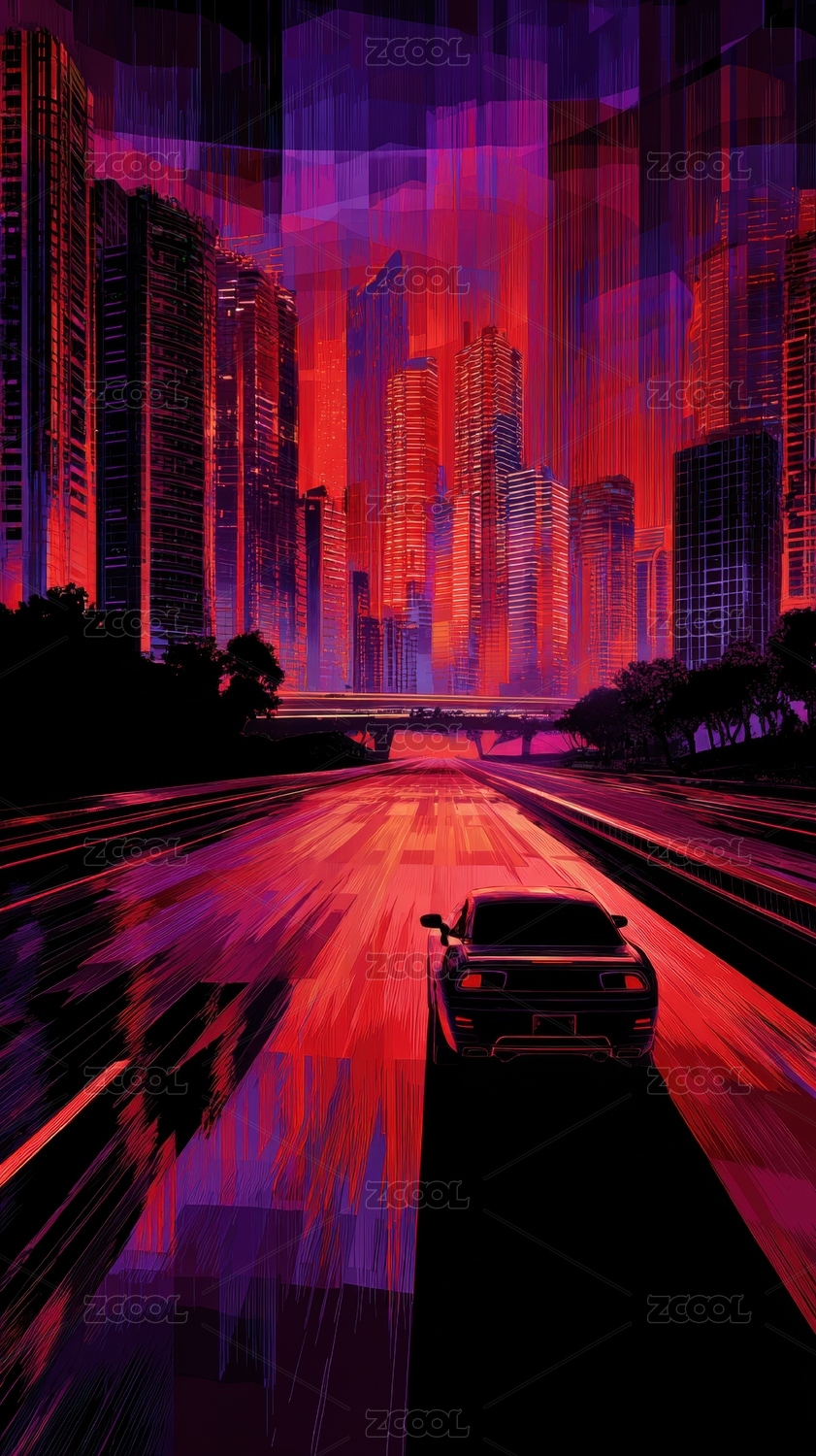 发光,潮流,灯光,现代,红蓝,赛博朋克,霓虹,街道,城市,未来