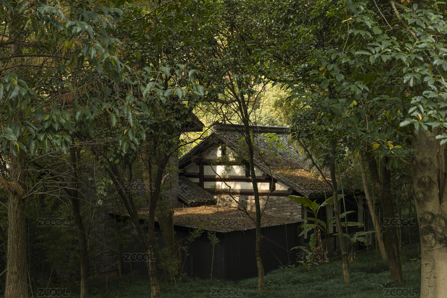 树林深处的灰瓦老房子