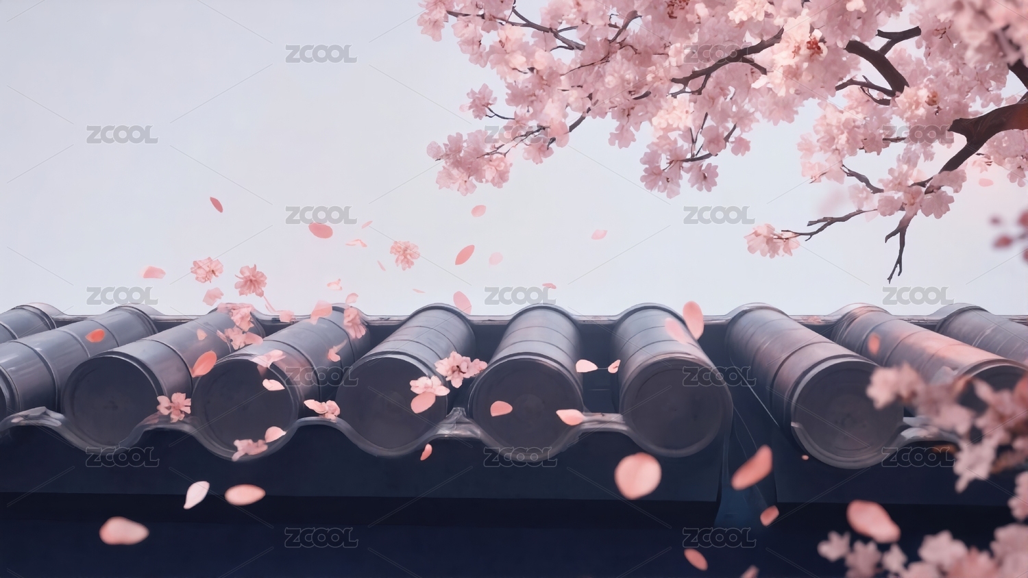 樱花与瓦片