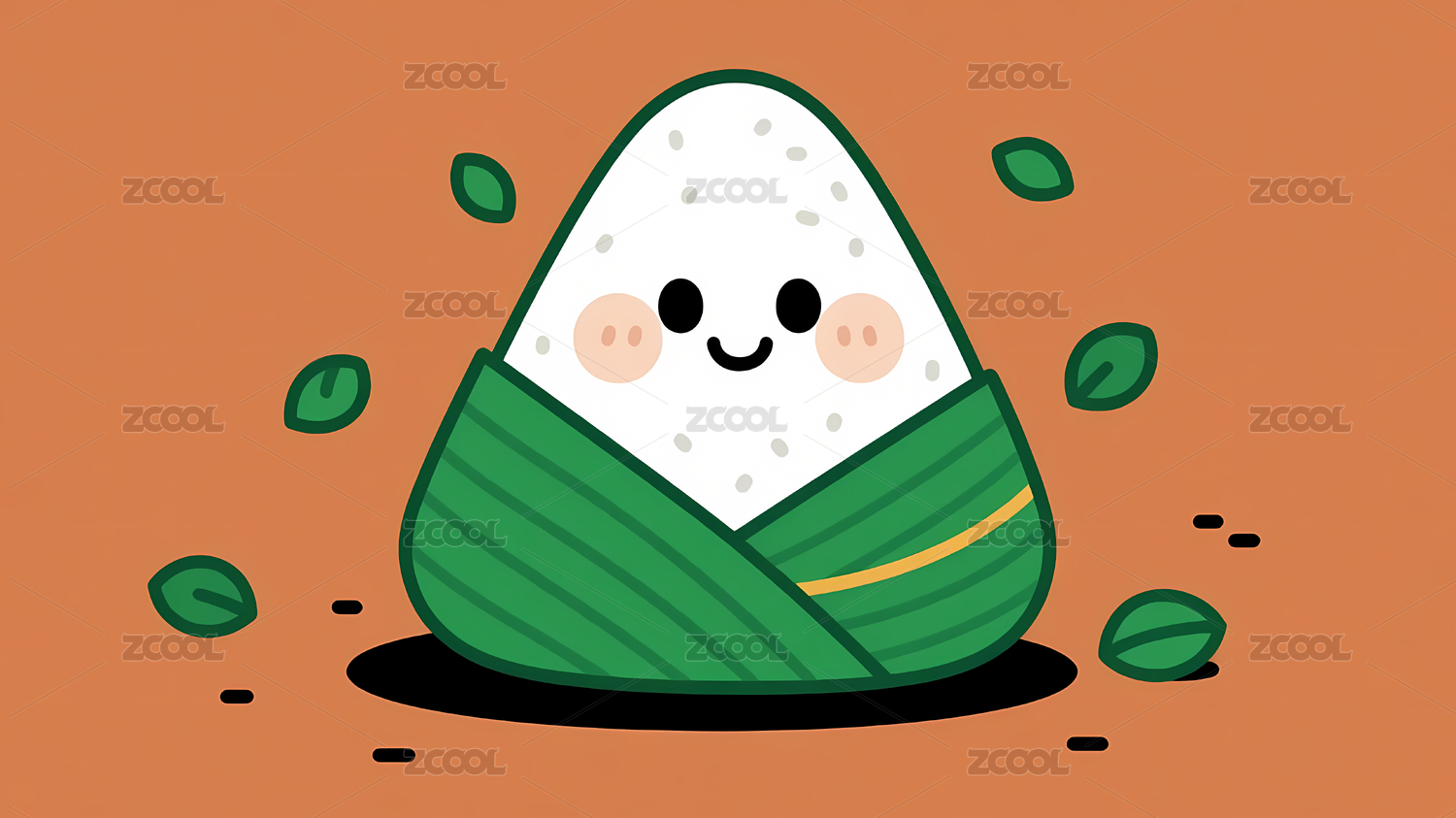 端午节沙滩上吃西瓜唱歌的可爱粽子的扁平矢