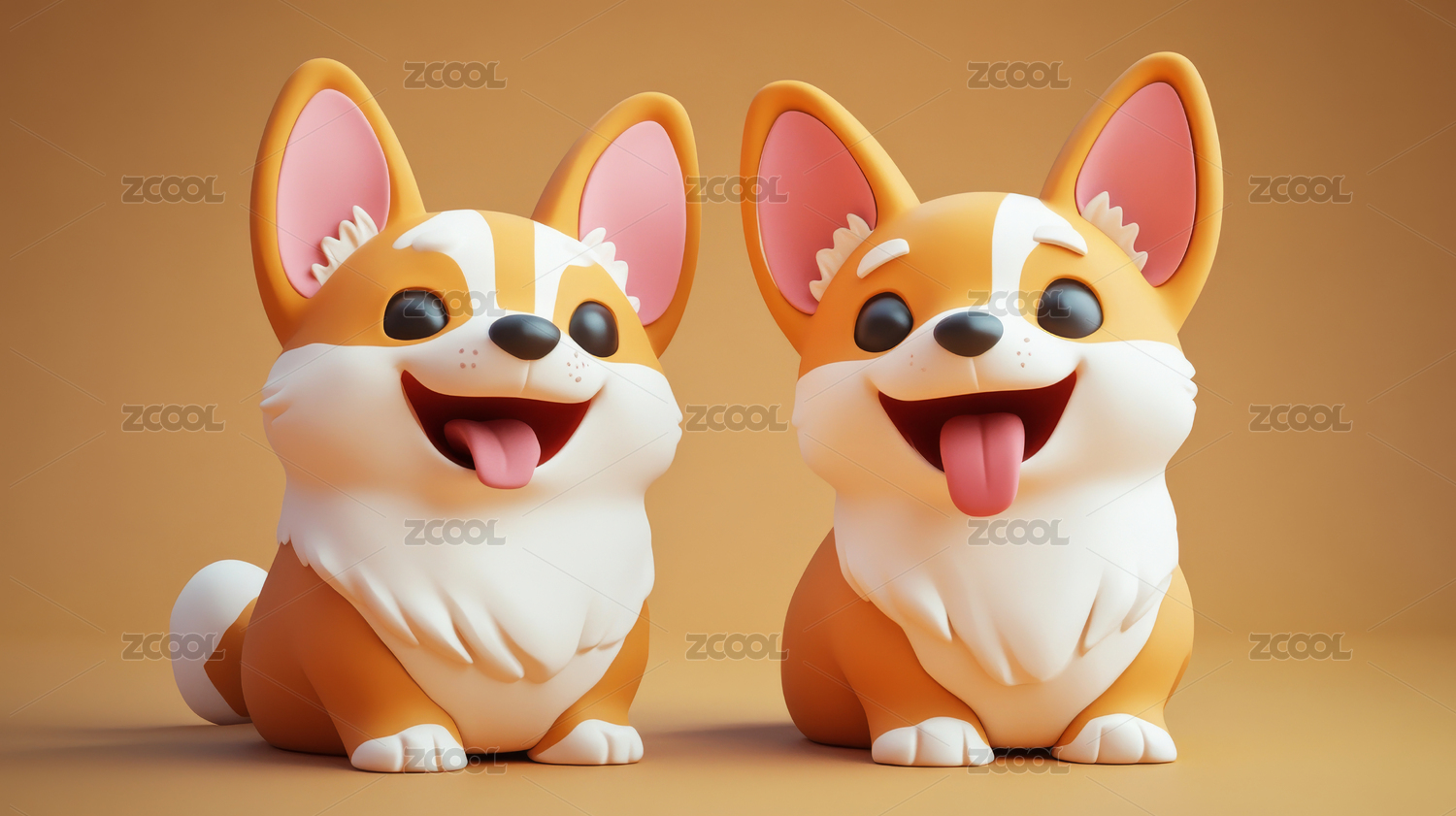 3d可爱卡通风格柯基狗