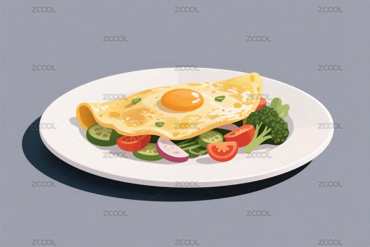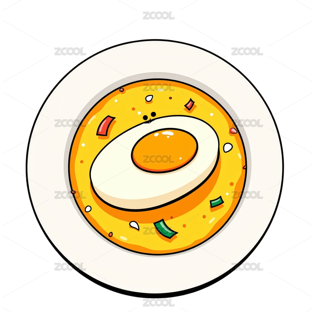 欧式美式快餐煎蛋鸡蛋蛋包饭3D卡通插画