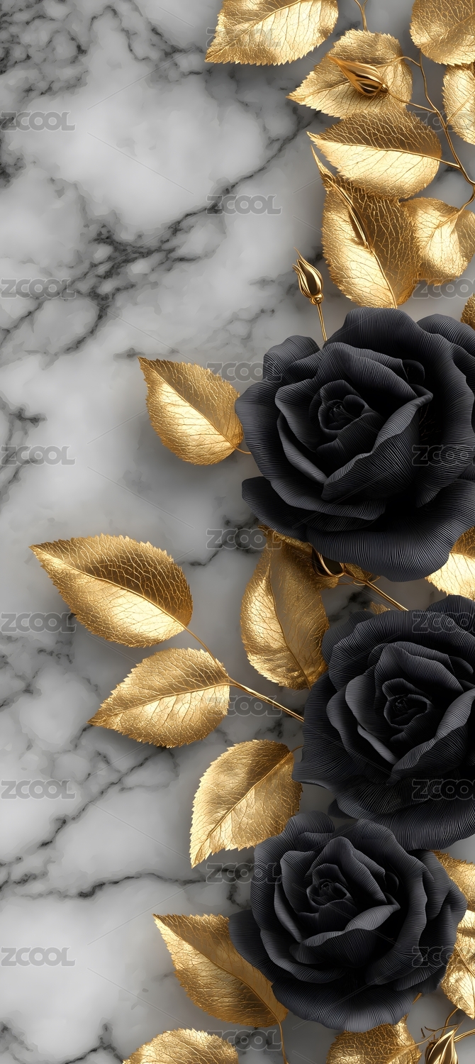 梦幻紫色花朵装饰的黑色大理石浮雕画框背景