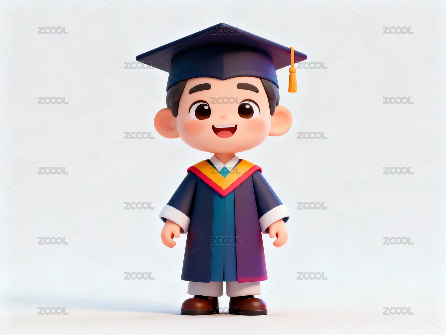 背书包戴博士帽的小孩3D卡通立体人物插画