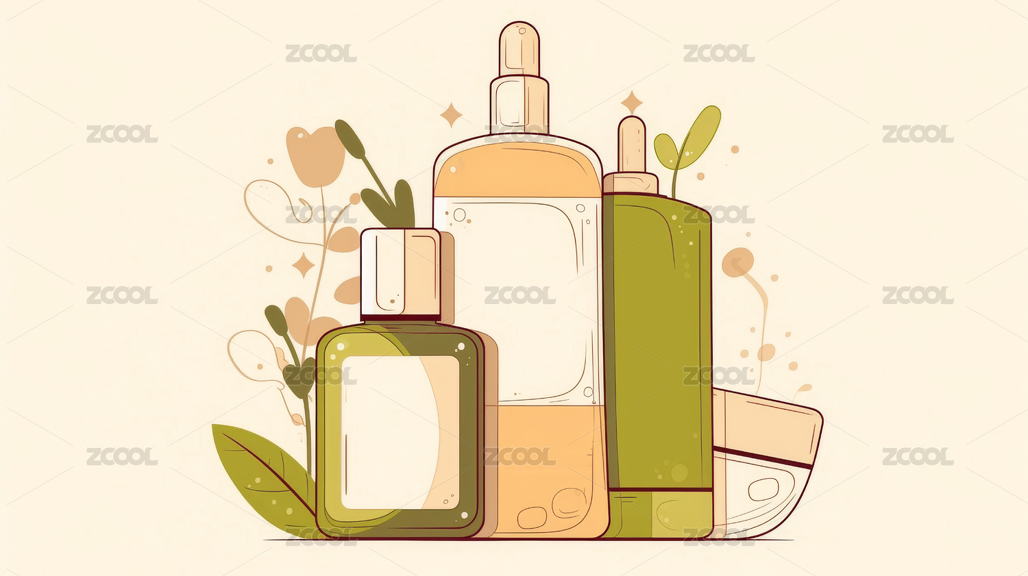 美妆护肤品时尚元素素材肌理森系装饰插画