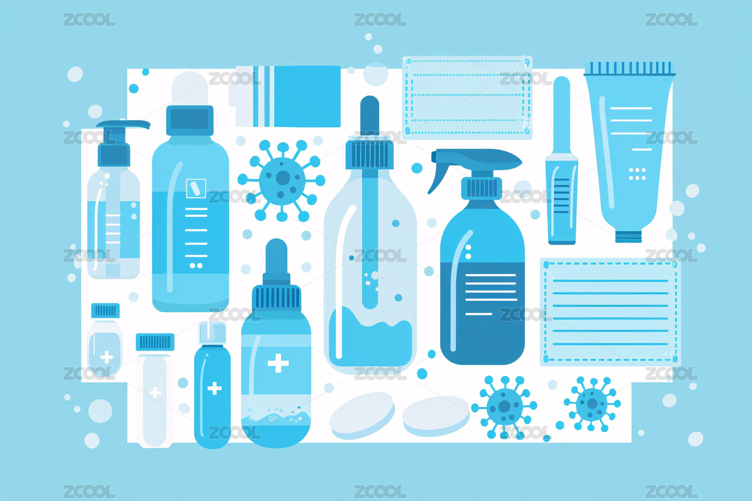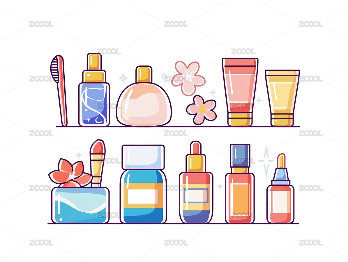 手绘很多化妆品小物件
