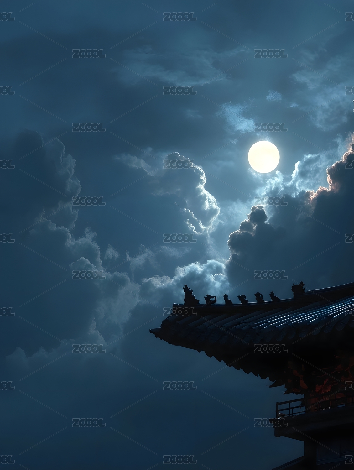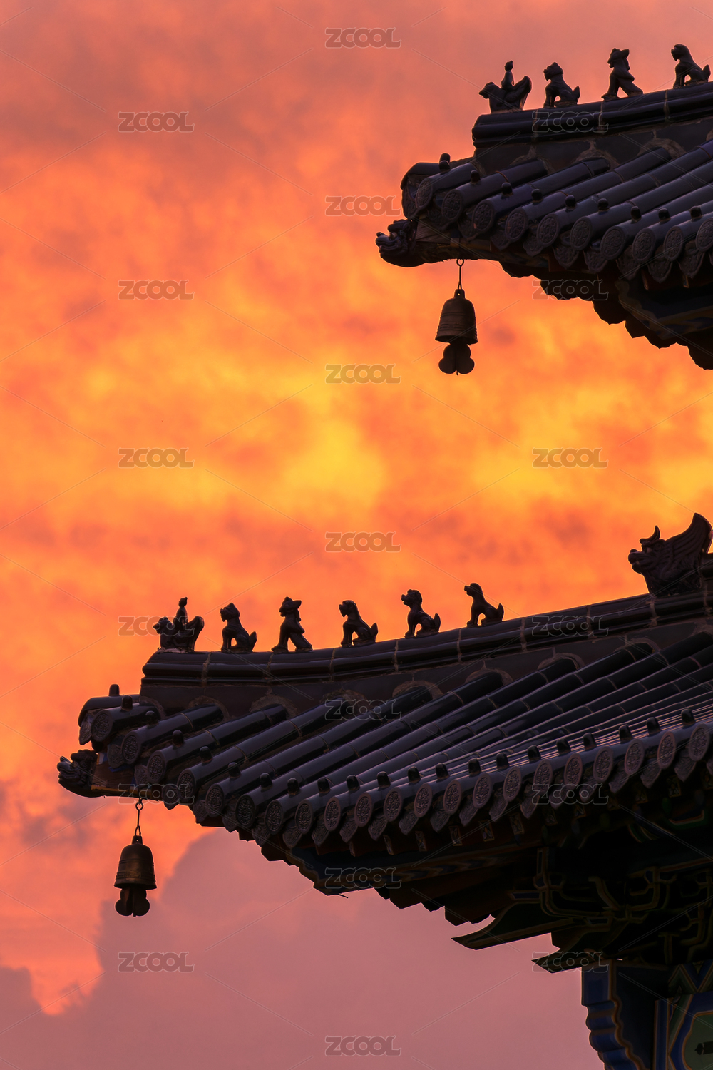 西安广仁寺传统建筑飞檐上的脊兽和风铃