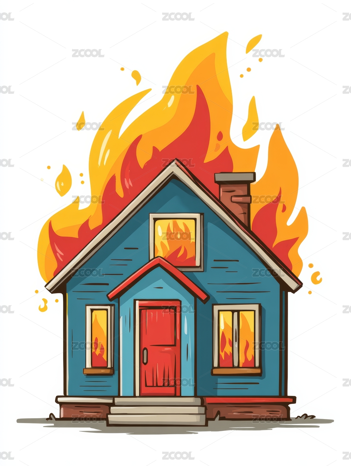 3款插画风格楼宇火灾消防安全熊熊大火PNG免抠素材