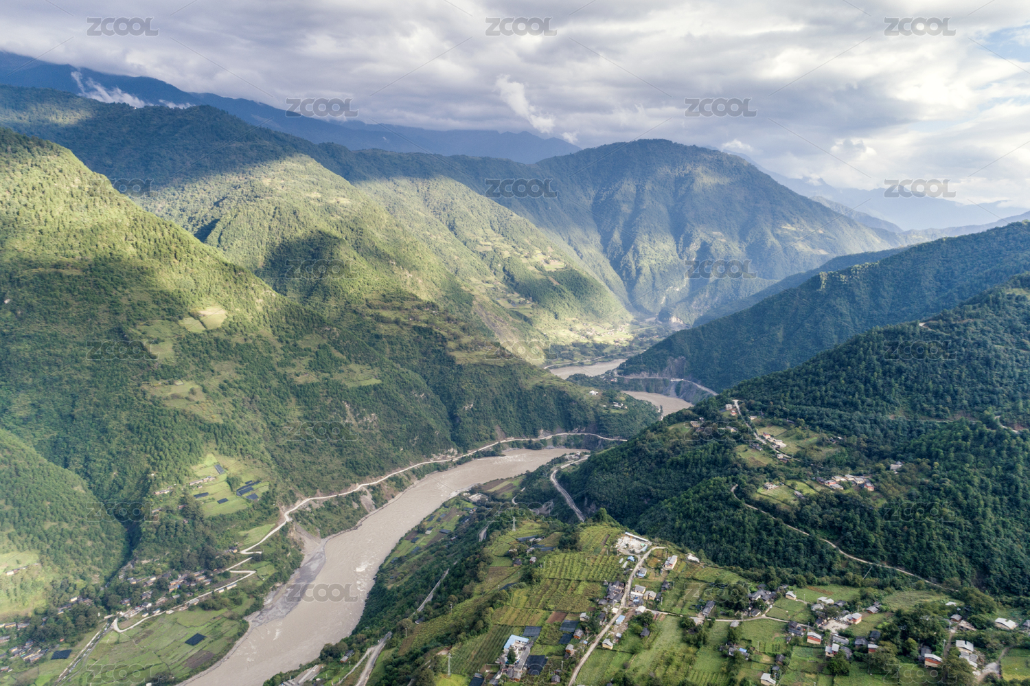 云南怒江傈僳族丙中洛人神共居秋色高空航拍