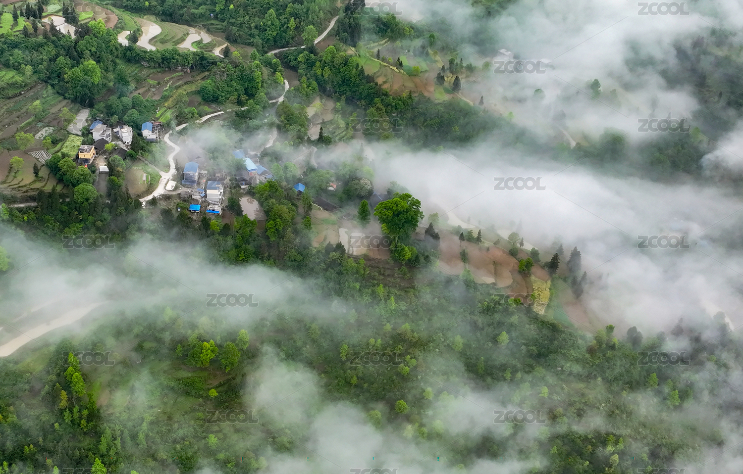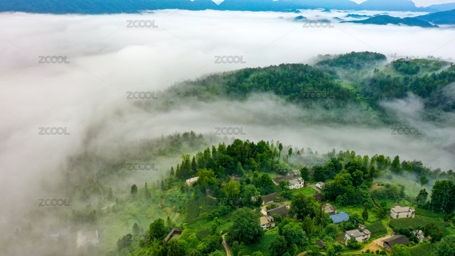 重庆酉阳仲夏清晨山雨欲来雾气袅绕乡村美