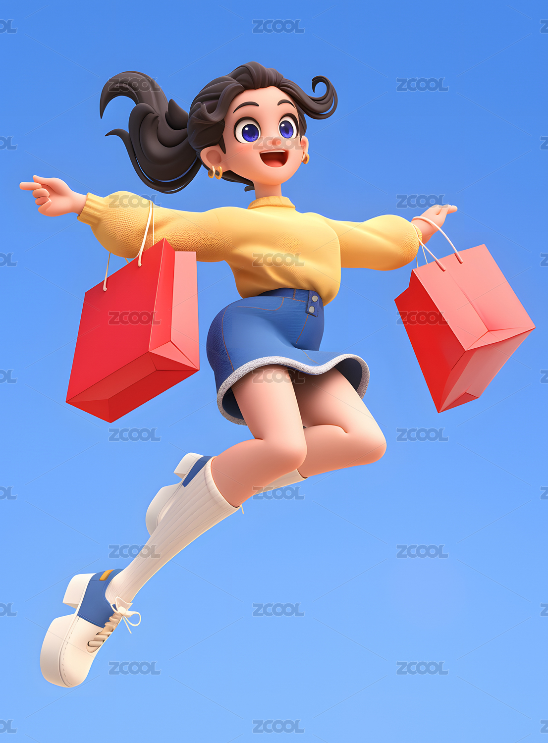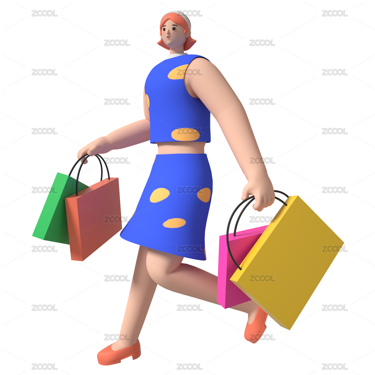 三维,立体,3D,卡通,购物,卡通女孩,采购,少女,女人,女性