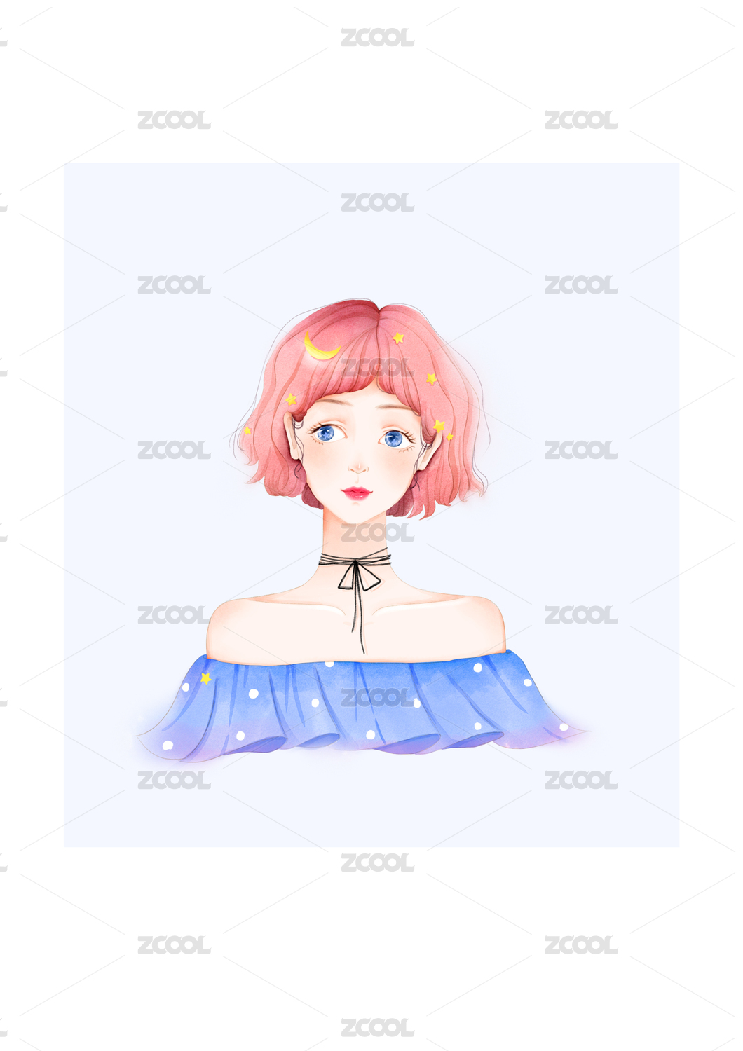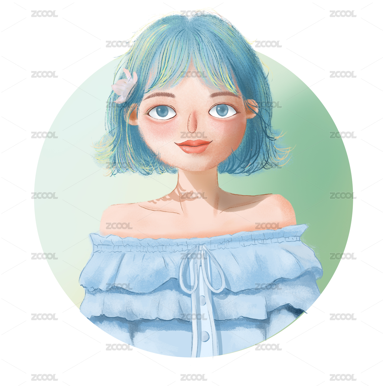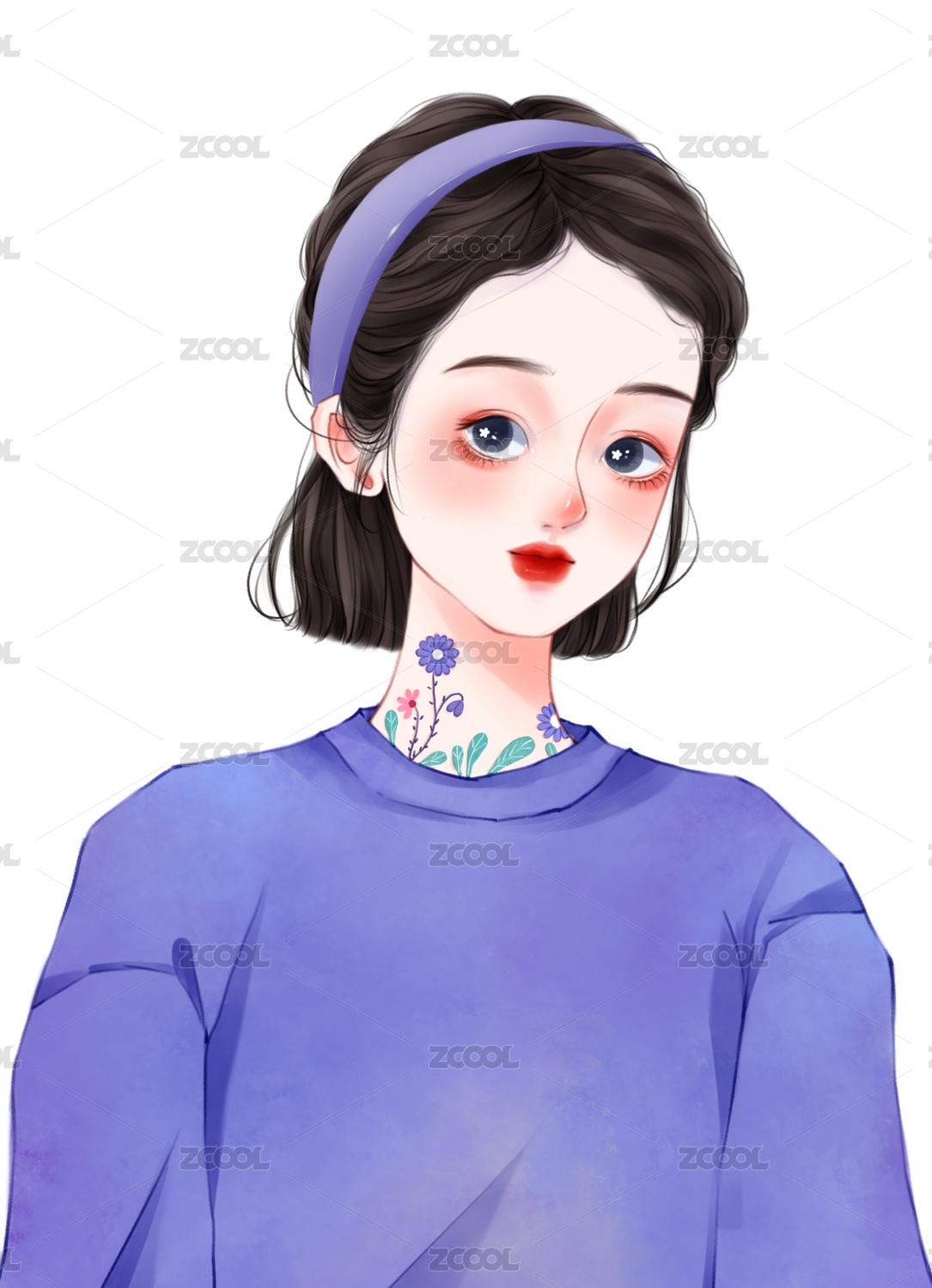动漫女孩黑长发蓝眼睛戴着耳环高清图片