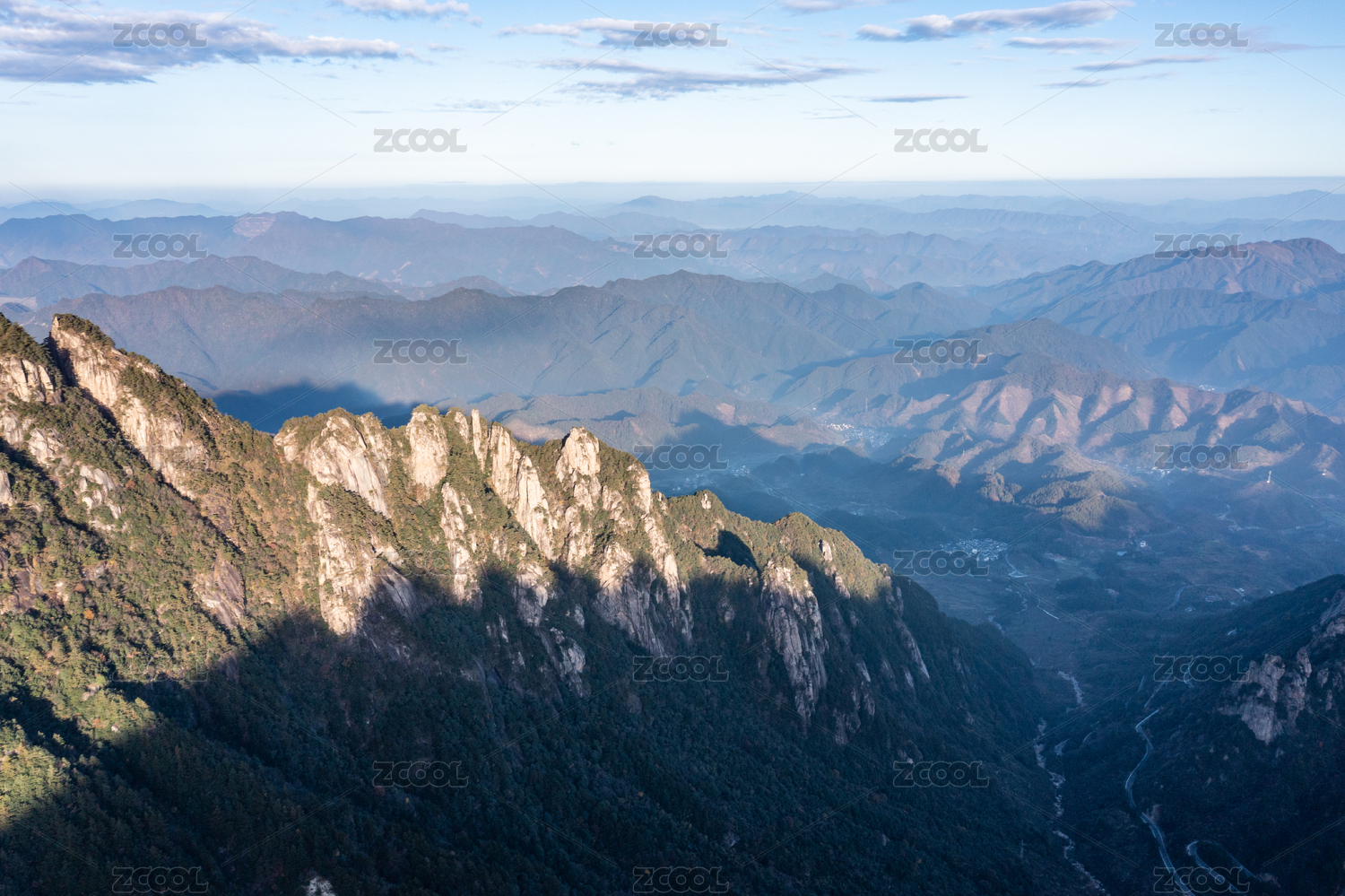 秋天晴空下的中国湖南张家界天门山景区延绵起伏的崇山峻岭