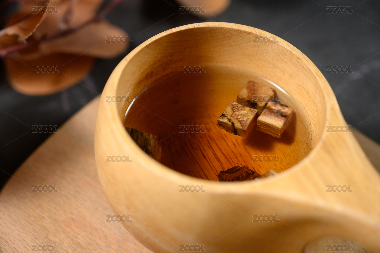 桌面上的杯子里的甘甜可口的胰岛果茶