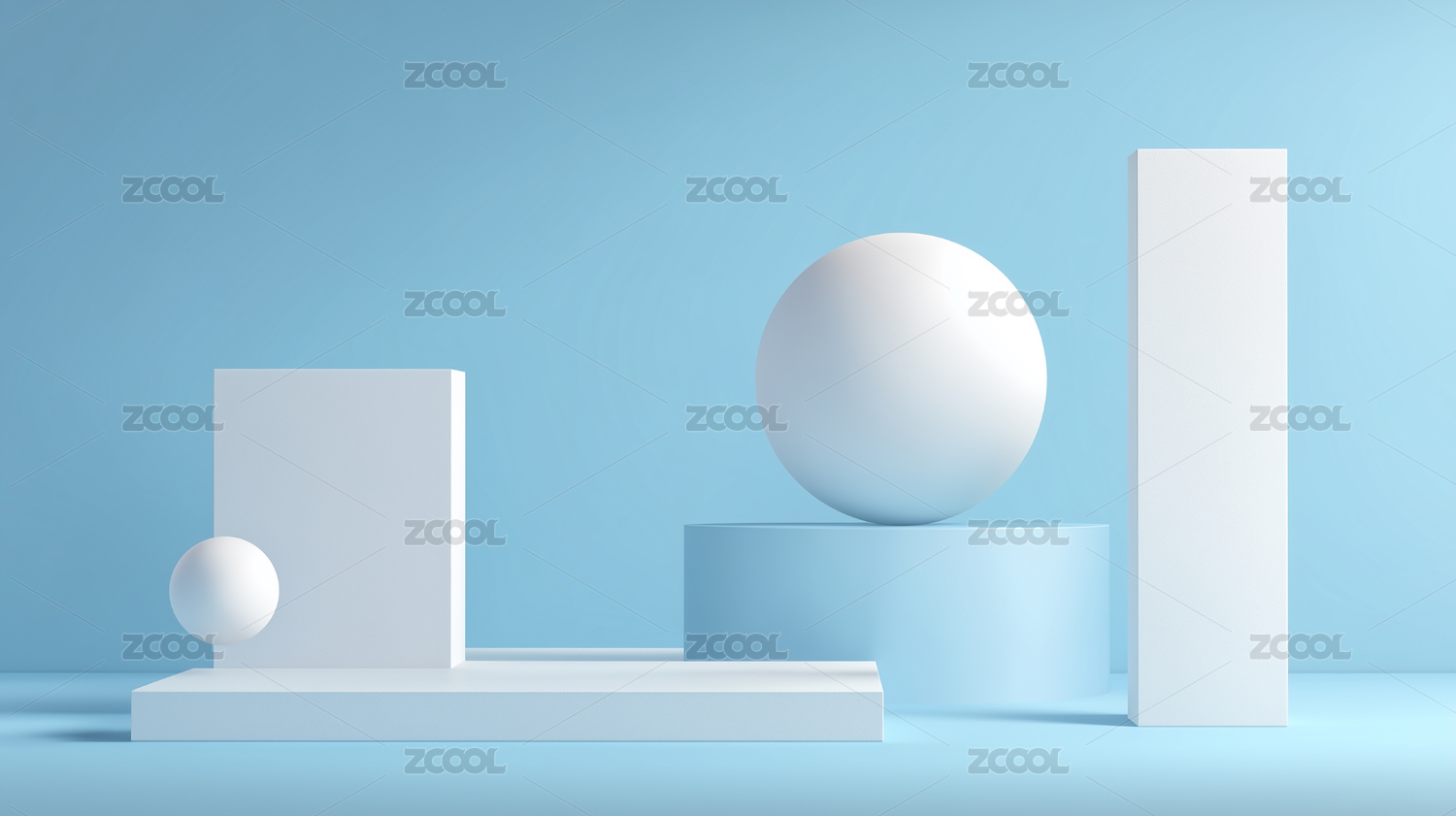 蓝色背景下白色球体与几何台阶
