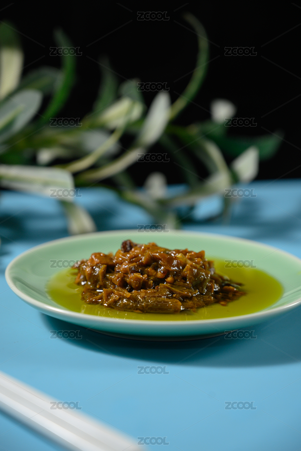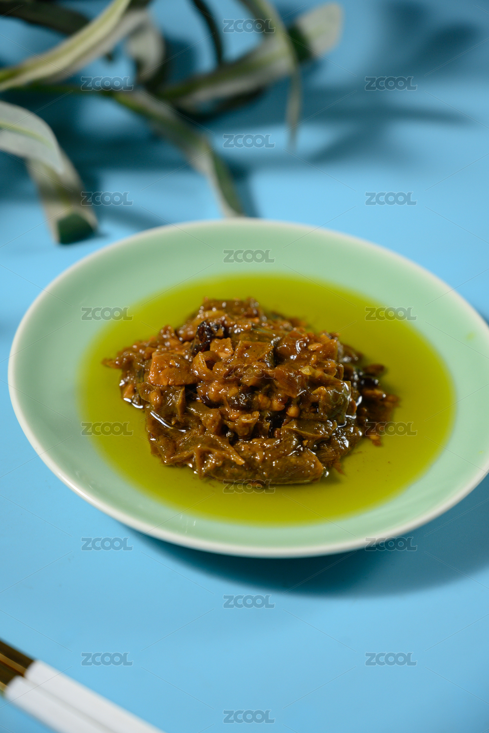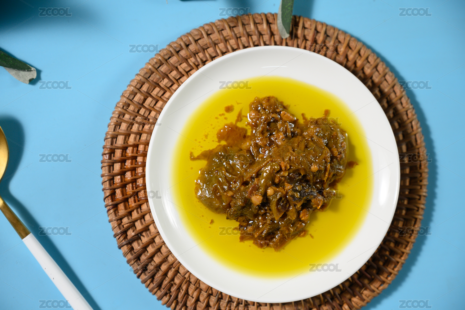桌面上的盘子里的美味可口的擂椒皮蛋酱