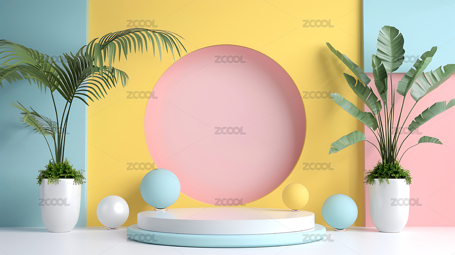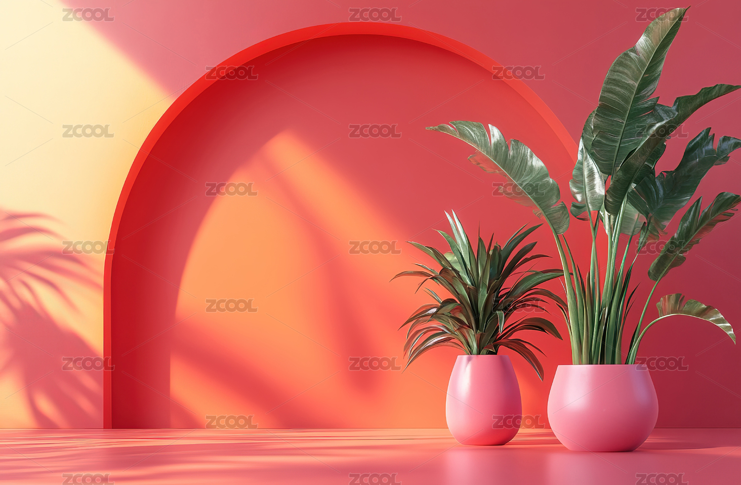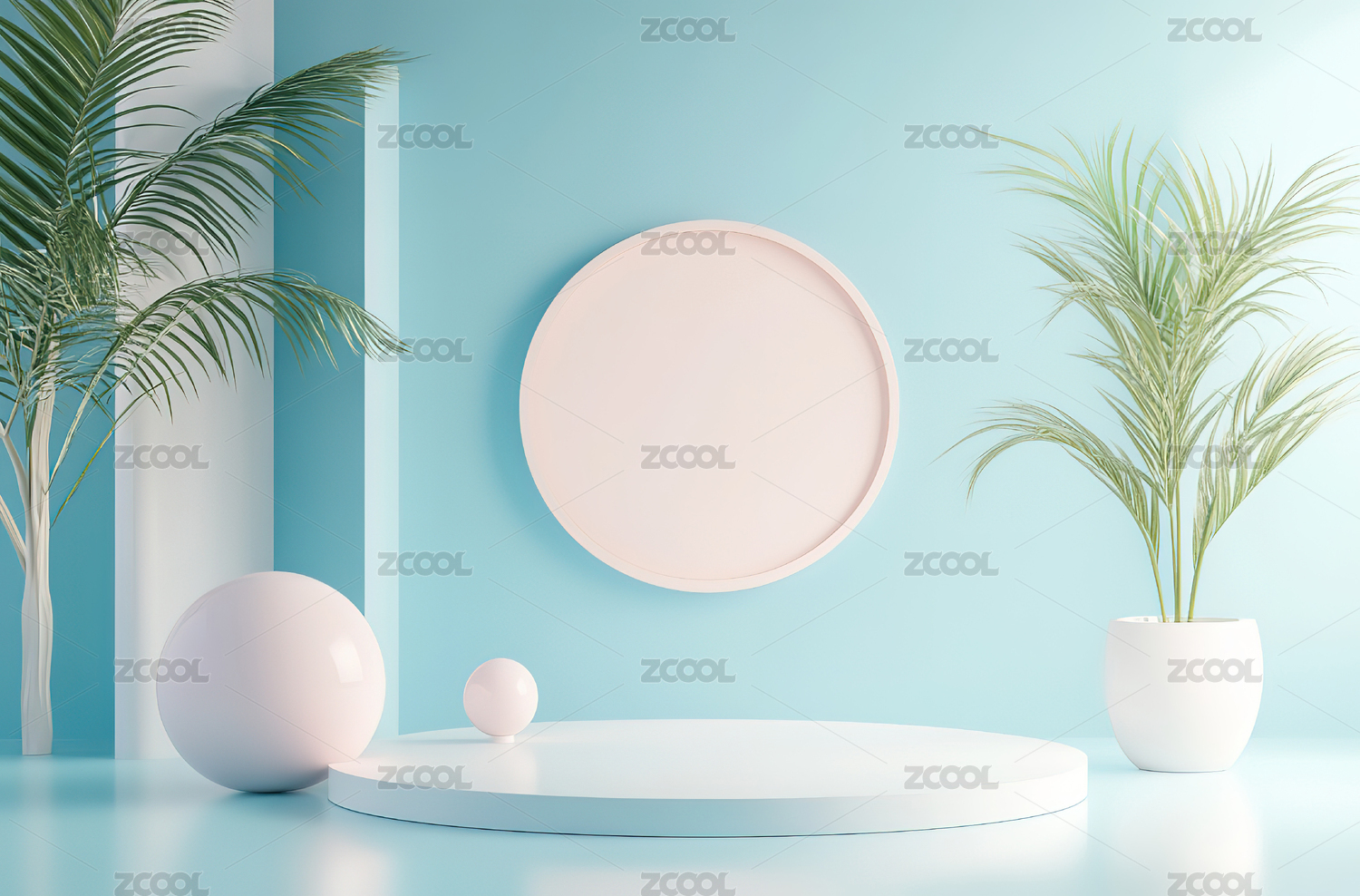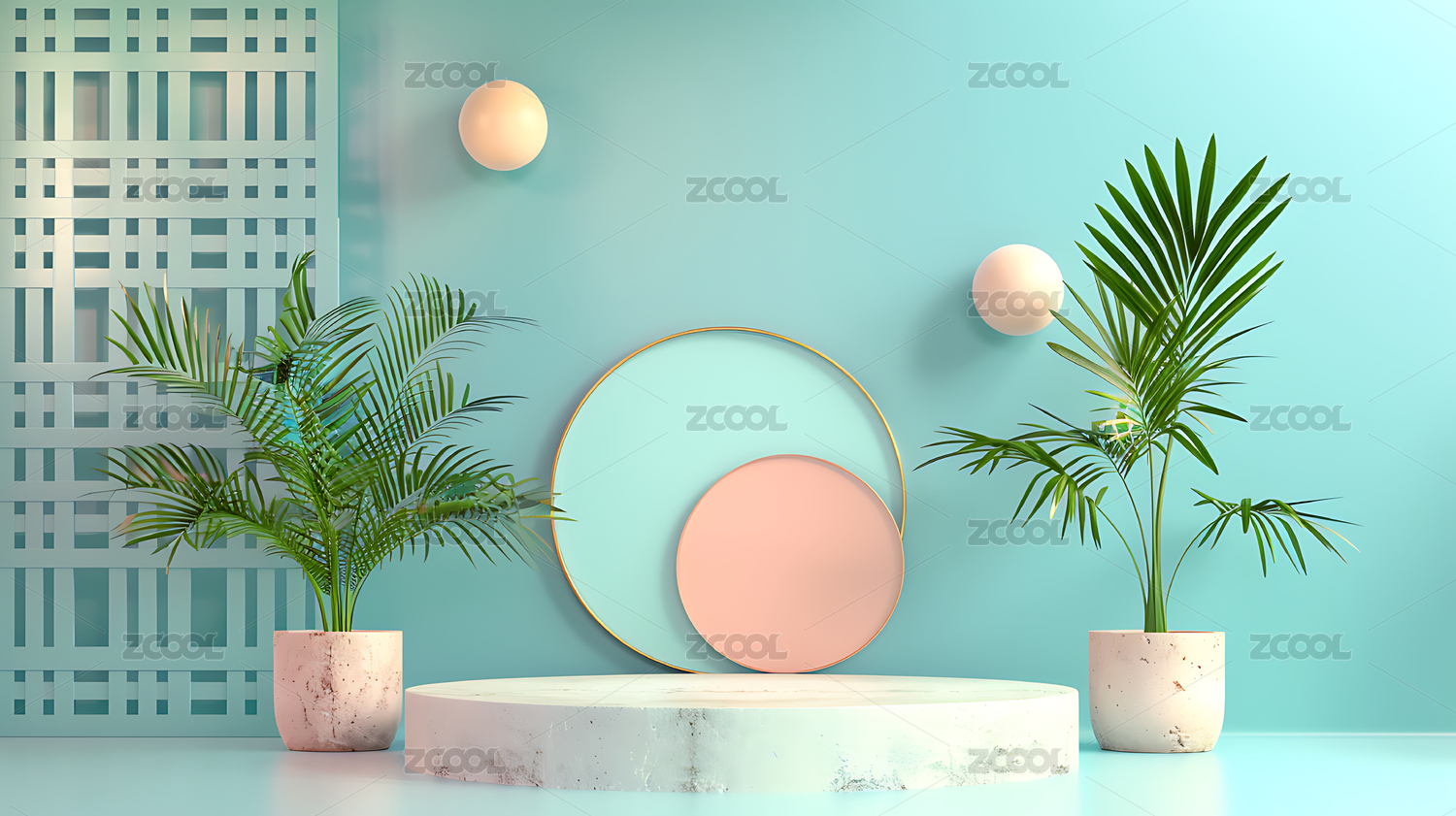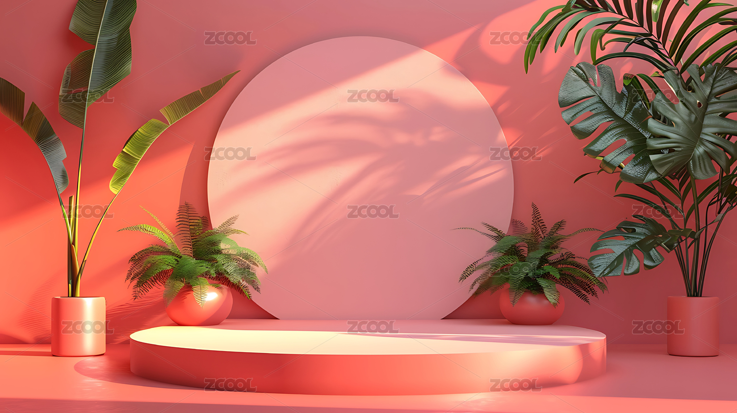 AI数字艺术,三维图形,产品展台,电子商务,背景,舞台,几何形状,植物,设计