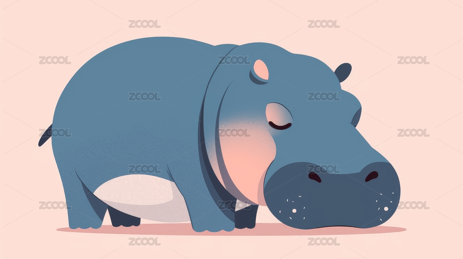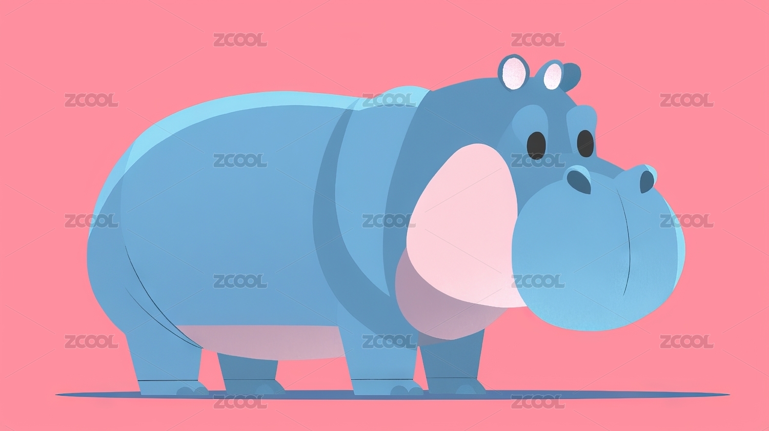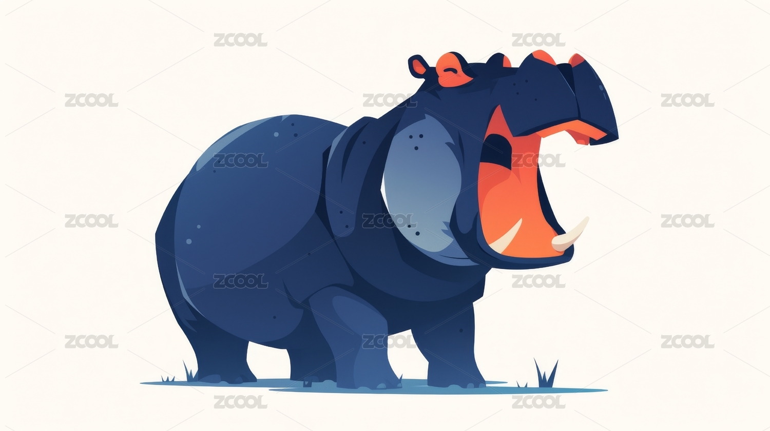 图形设计,概念插画,描边风格,小河马,LOGO,装饰画,设计,动物,矢量图形,黄色