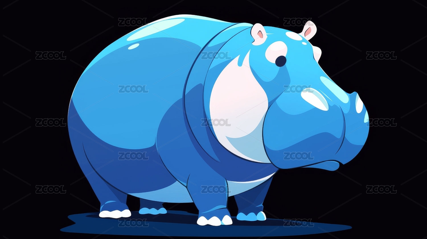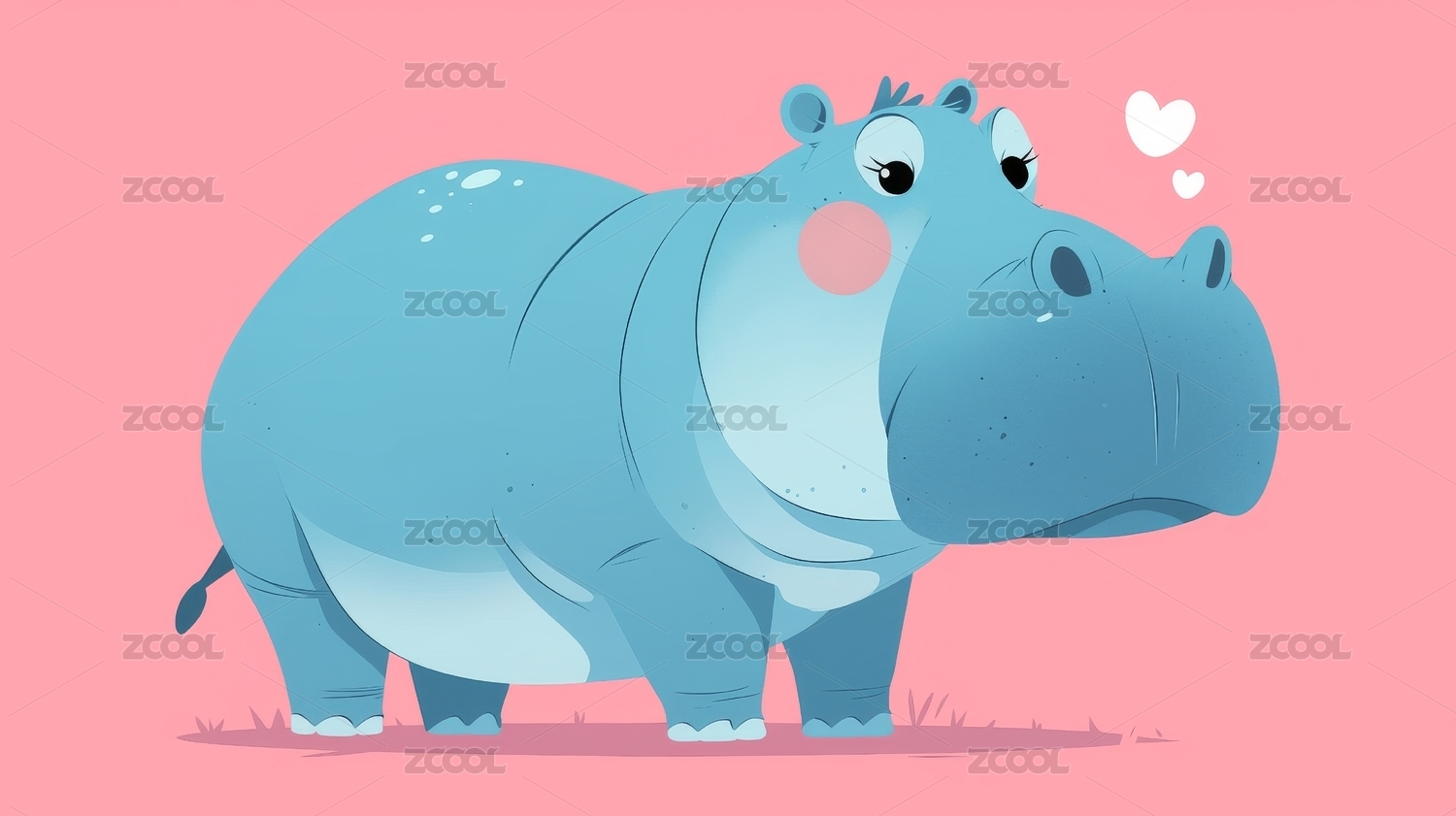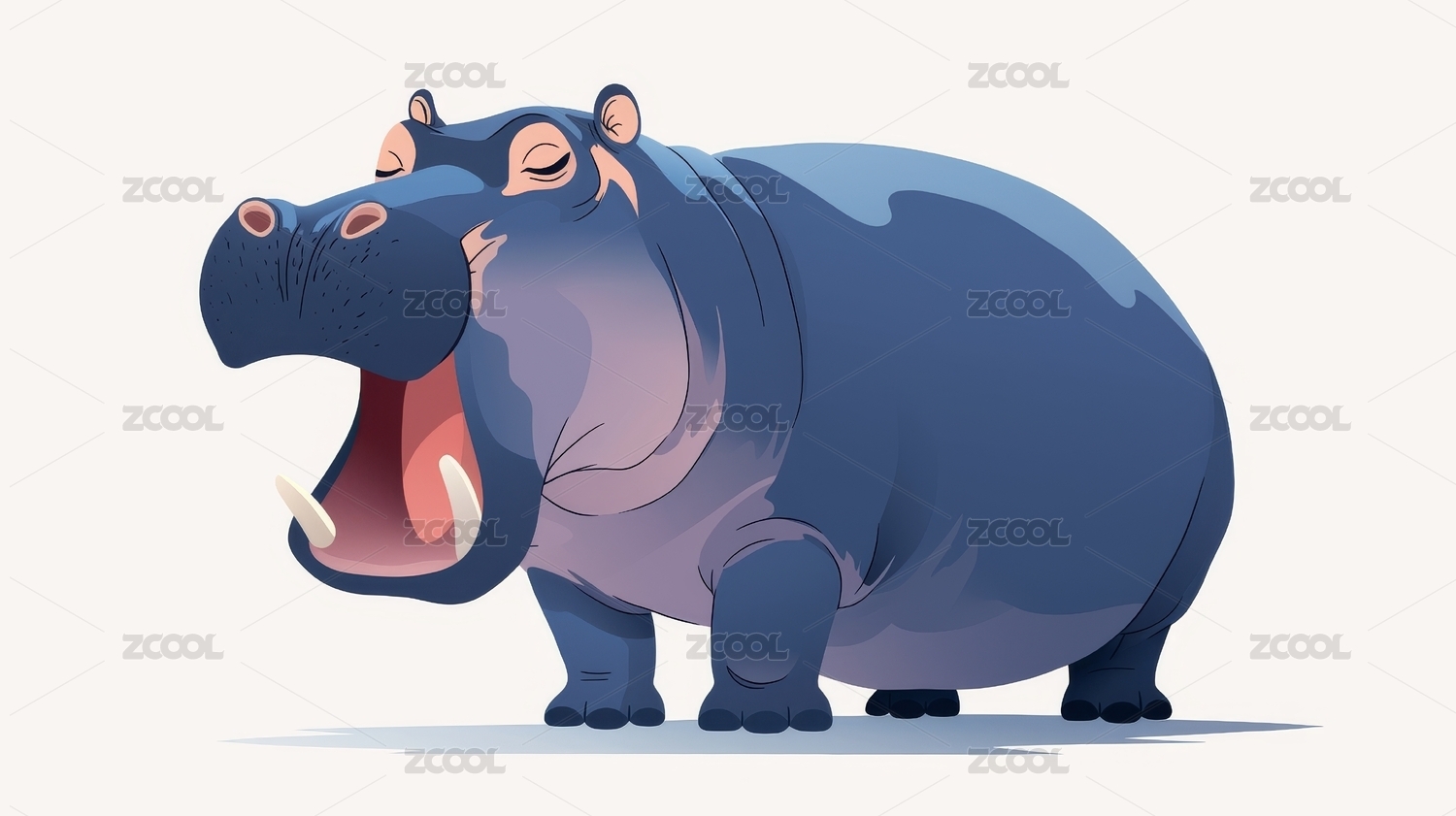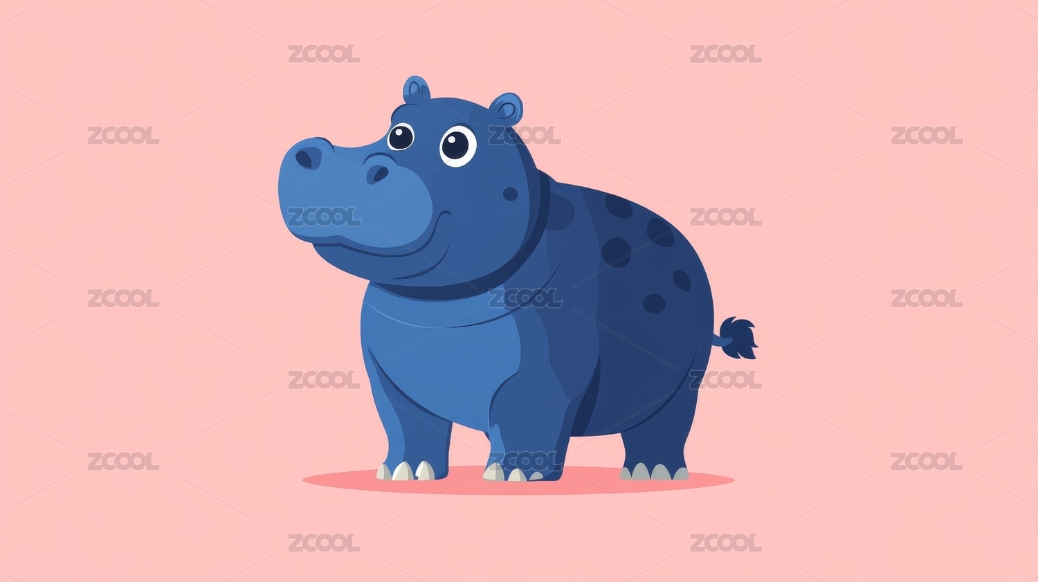 图形设计,概念插画,描边风格,小河马,LOGO,装饰画,设计,动物,矢量图形,黄色