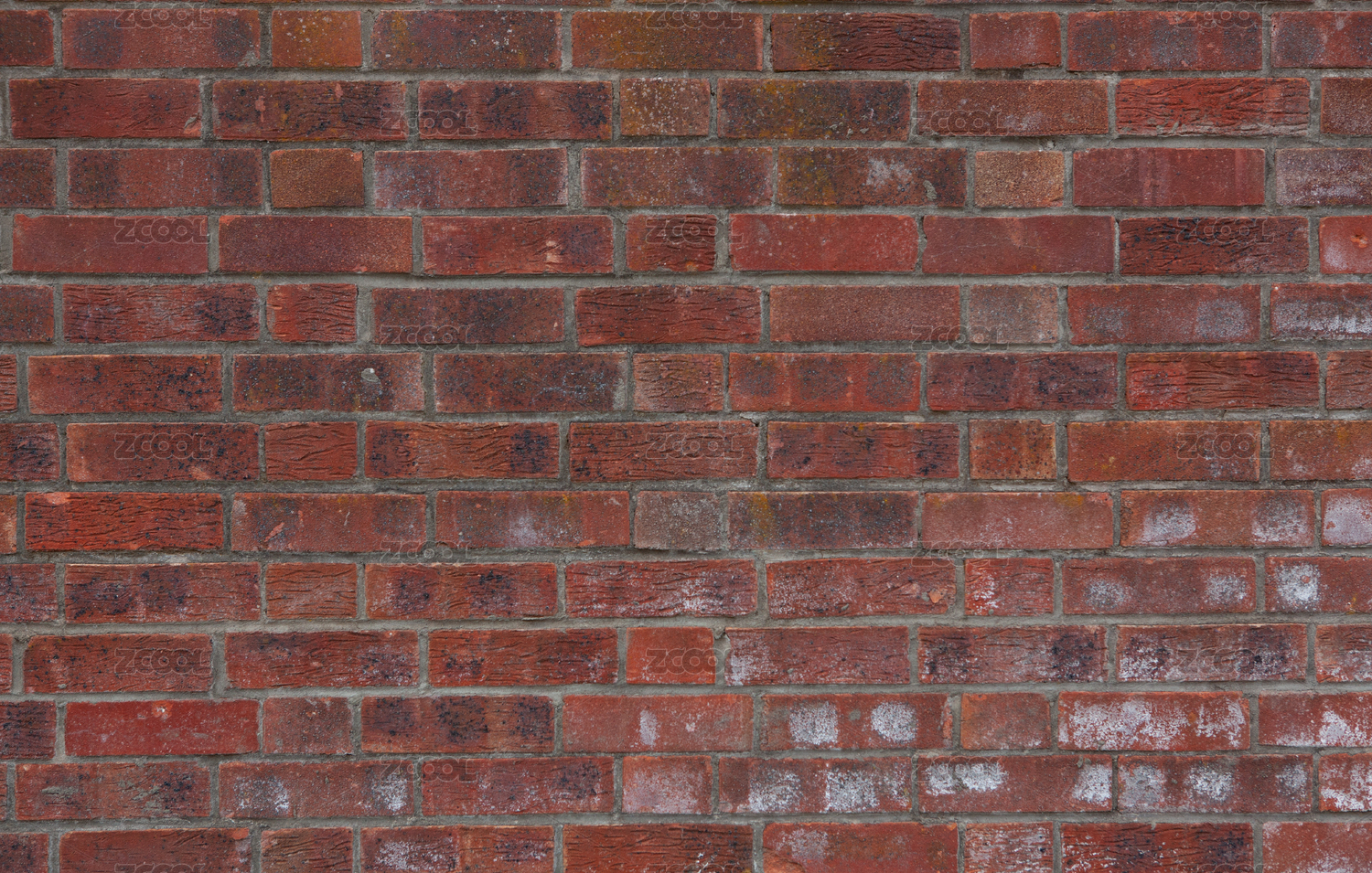 潮湿的红砖墙上长满了青苔纹理图案特写