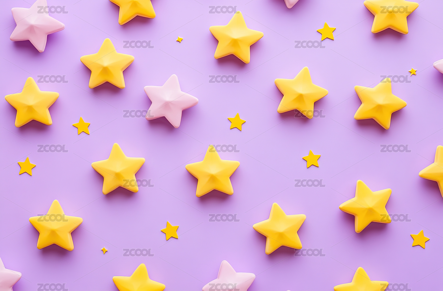 3D彩色玻璃质感渐变星星群粉色背景