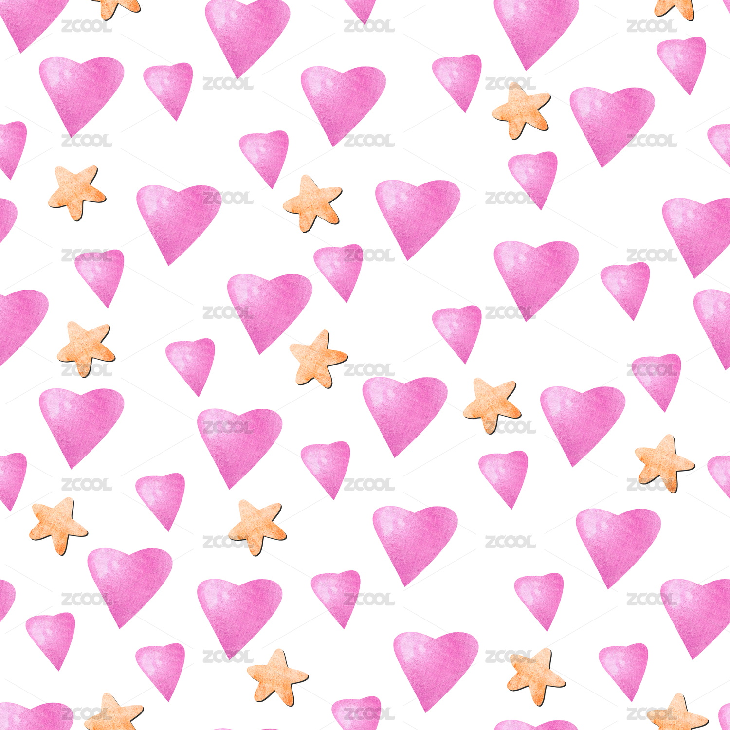 水彩爱心星星无缝背景