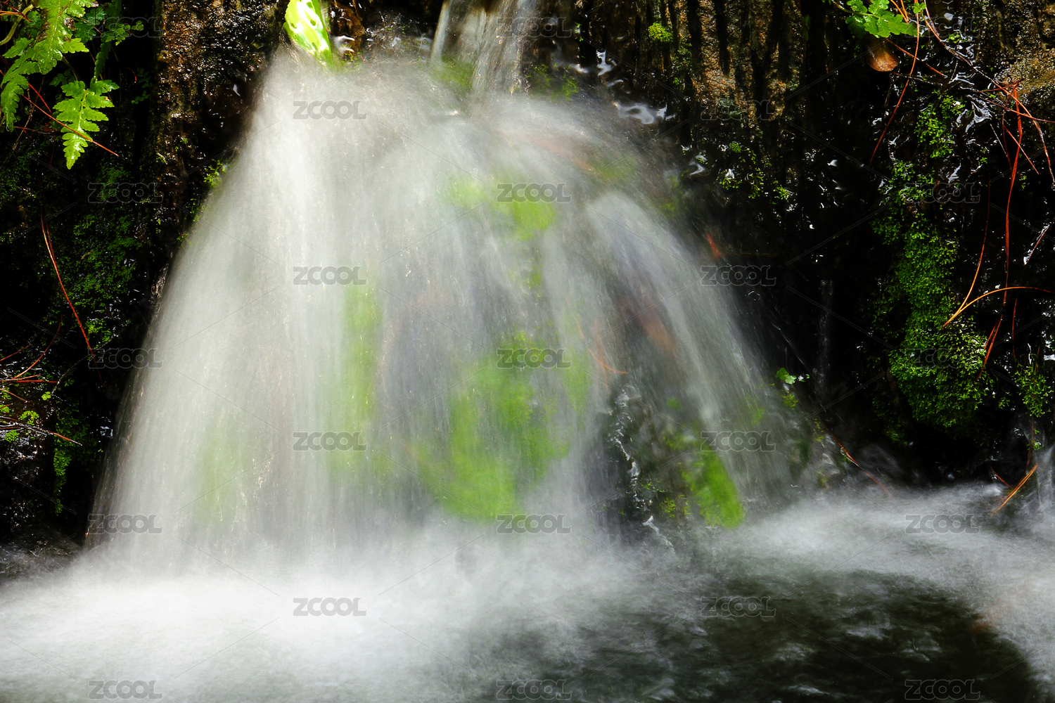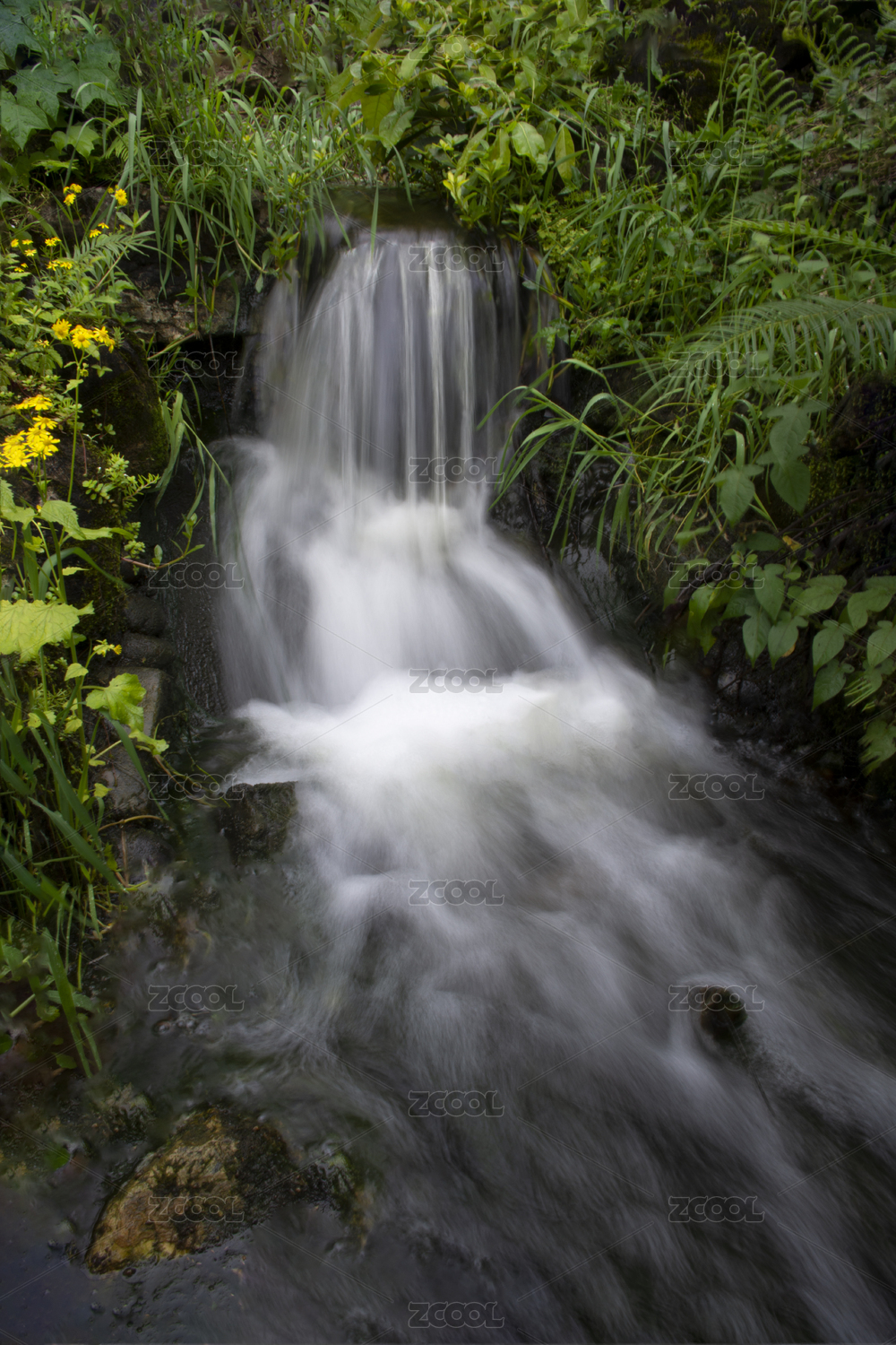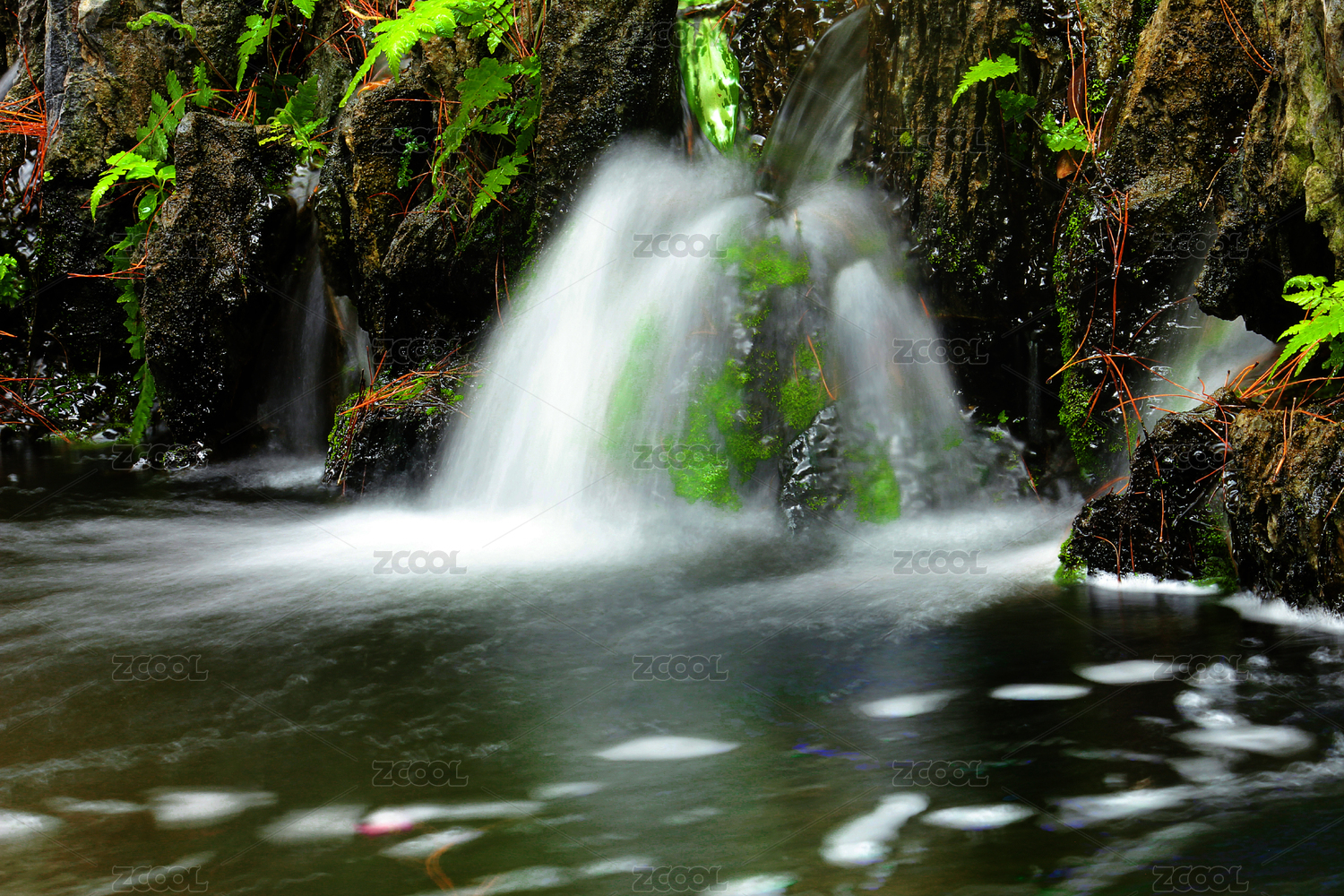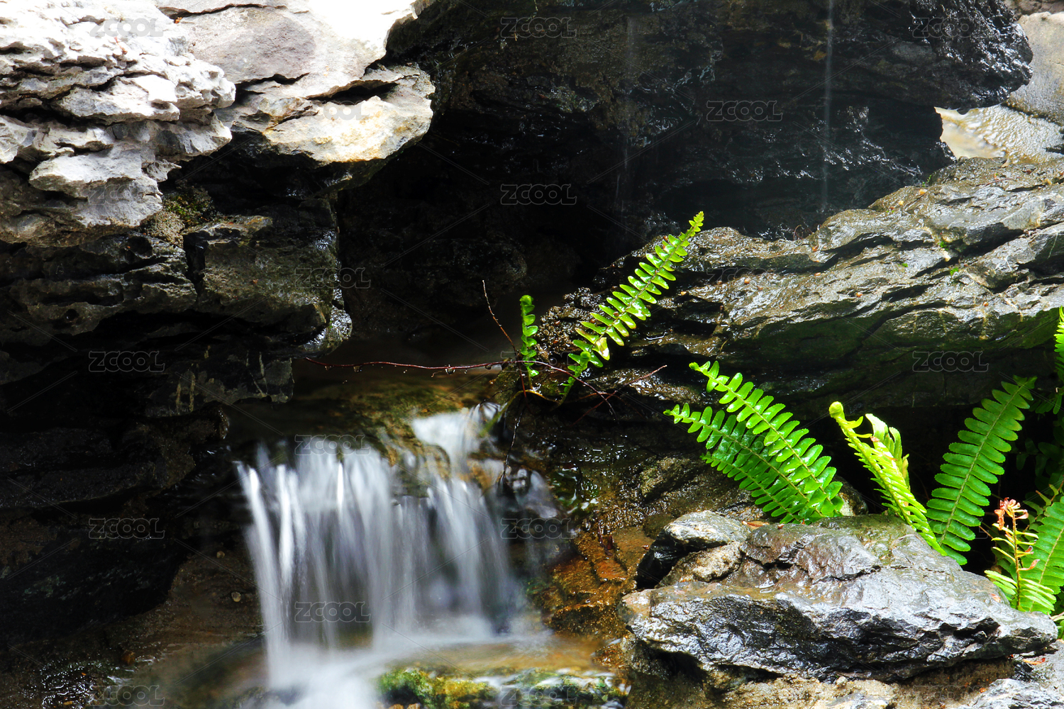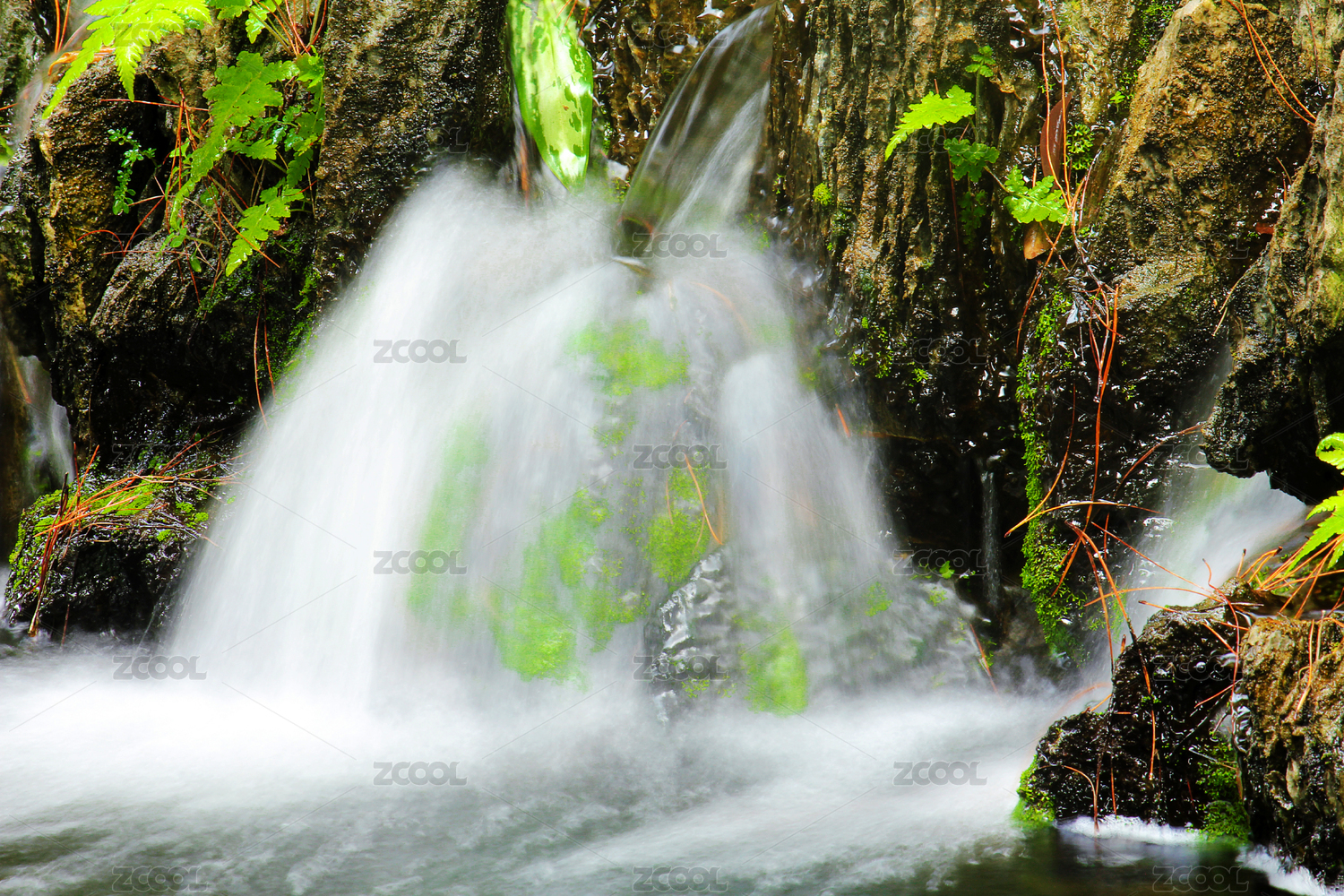 岩石间的小溪流瀑布
