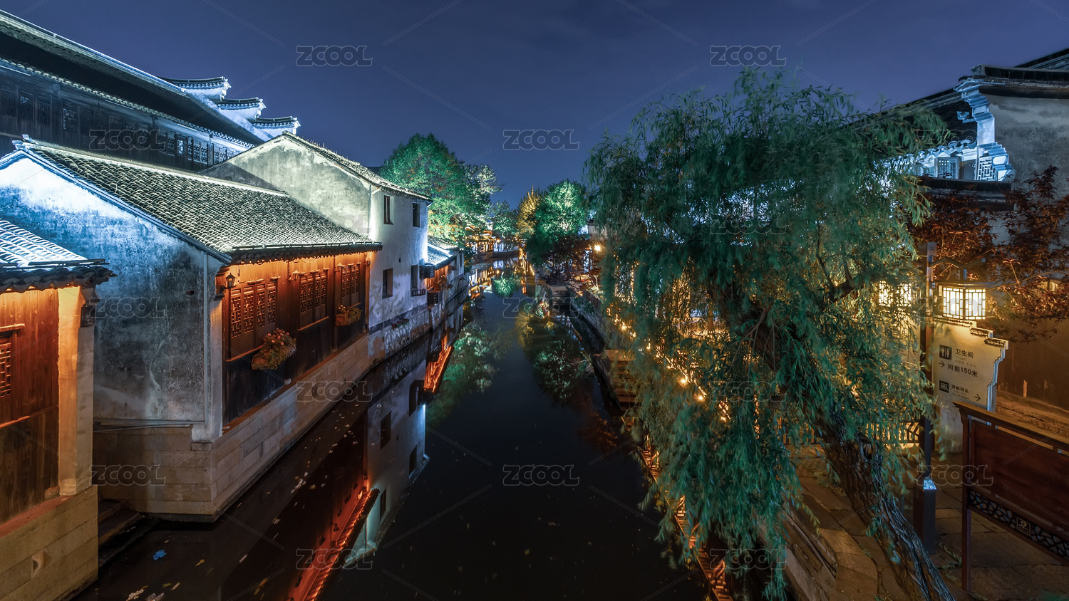 中国江苏南京白鹭洲公园江南古建筑夜景
