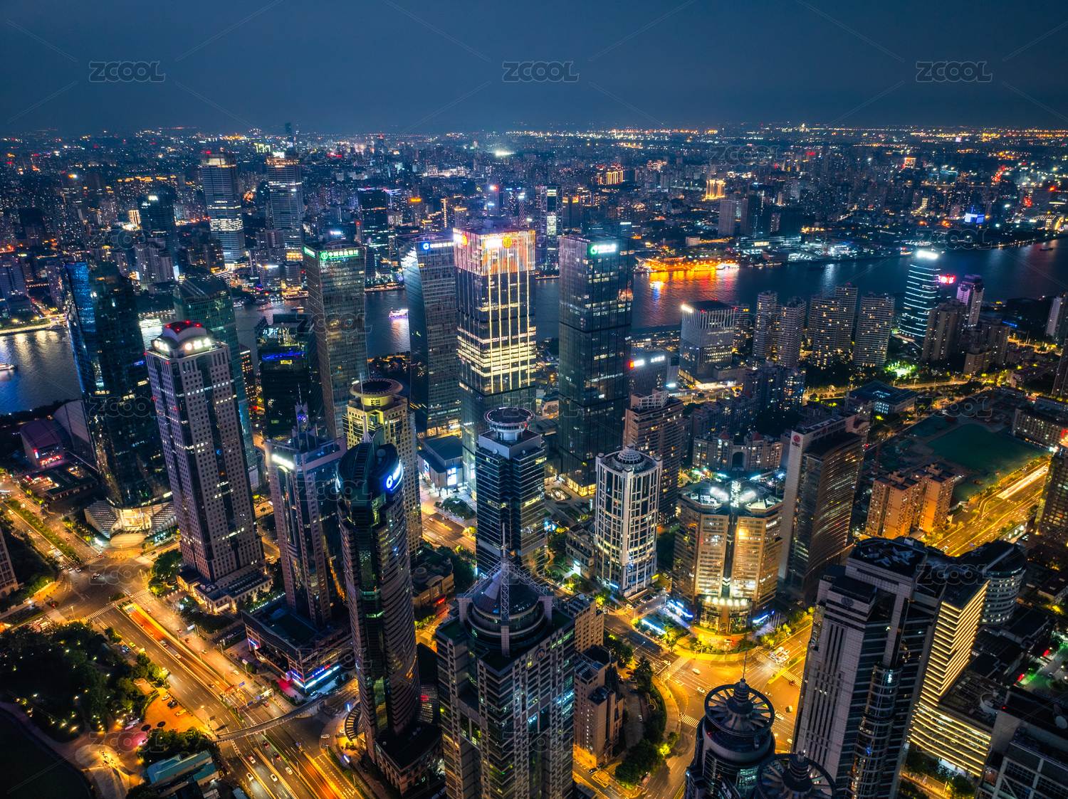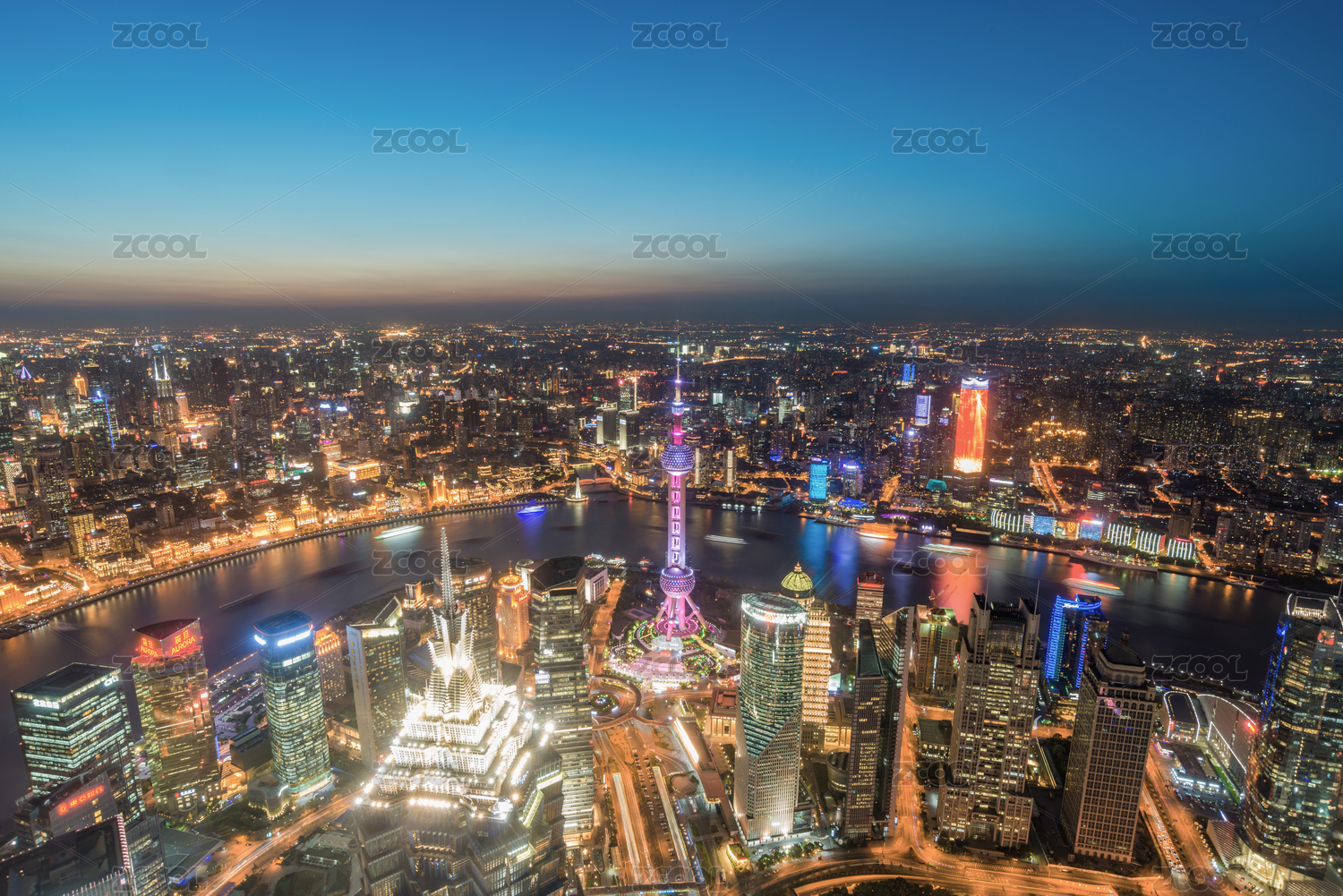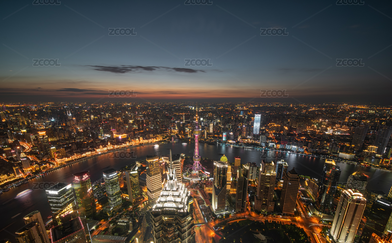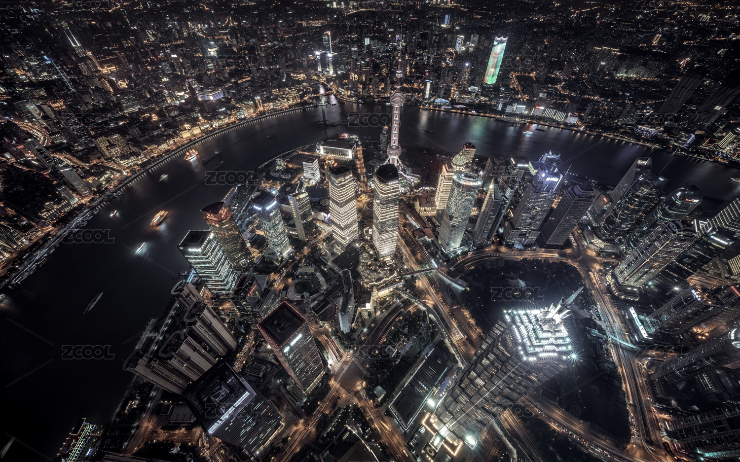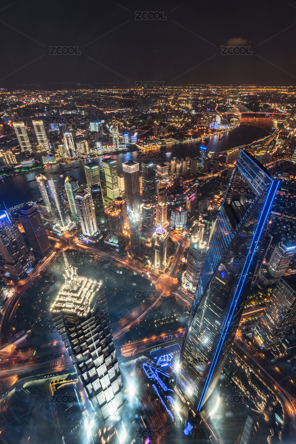 高视角俯瞰中国上海城市夜景