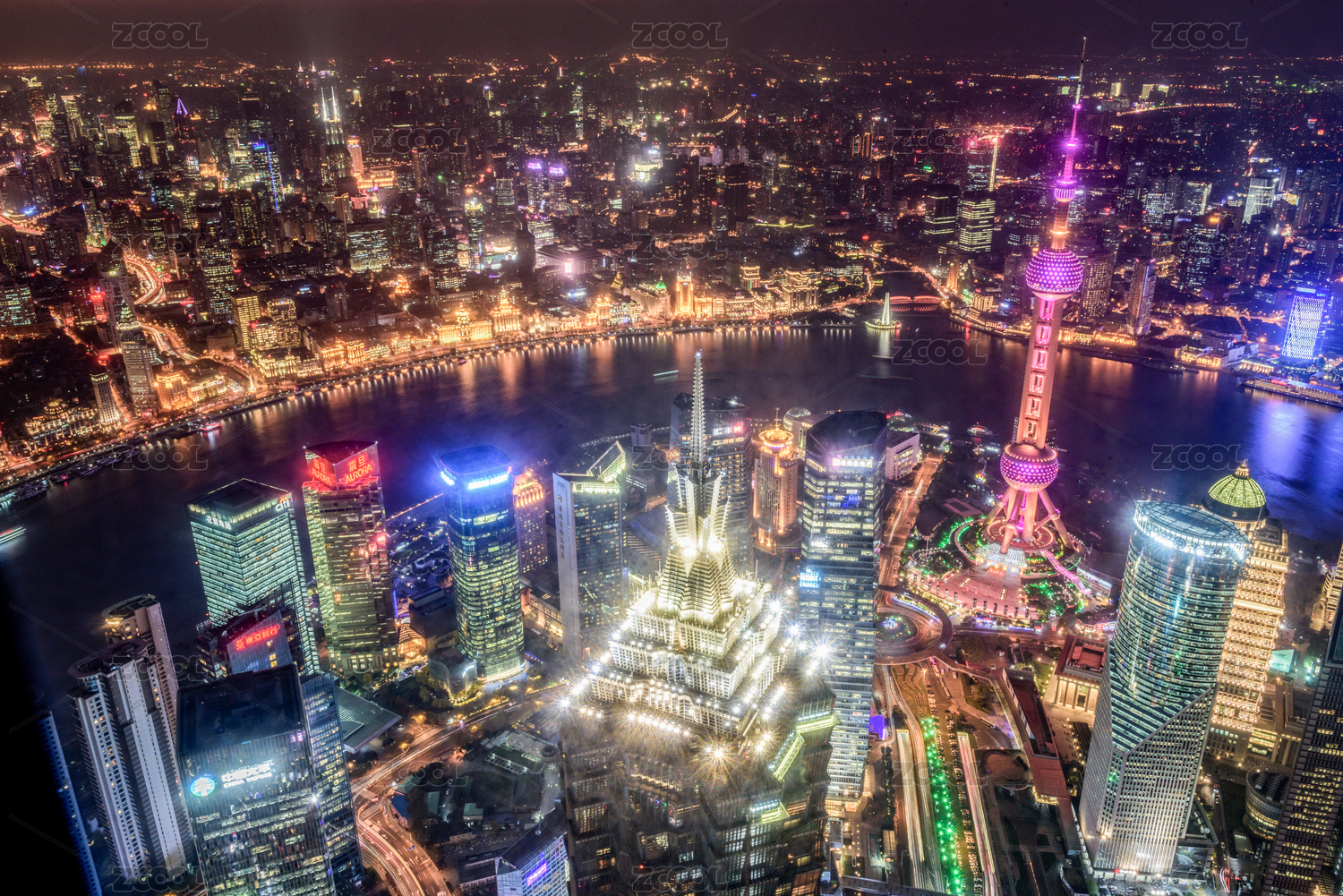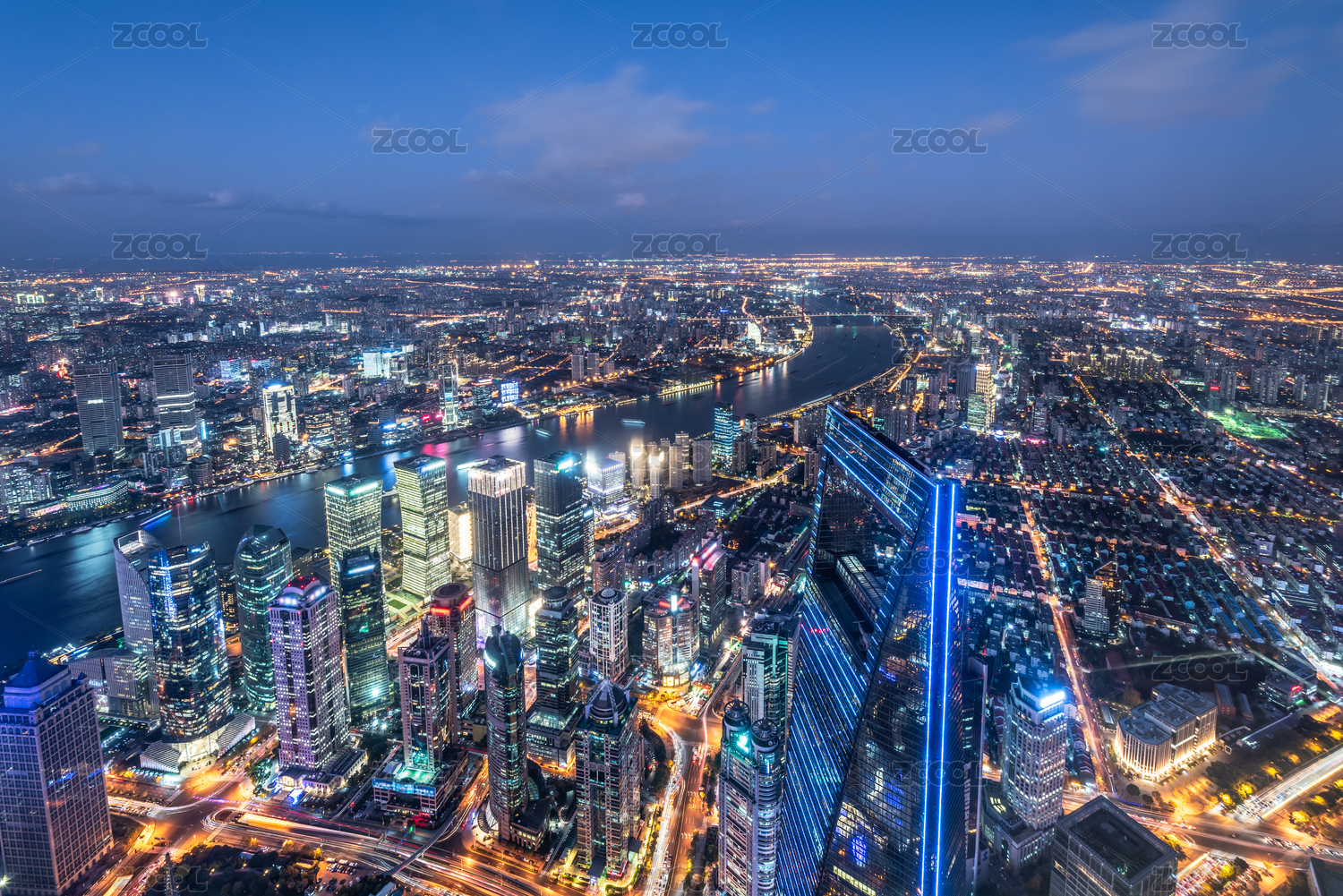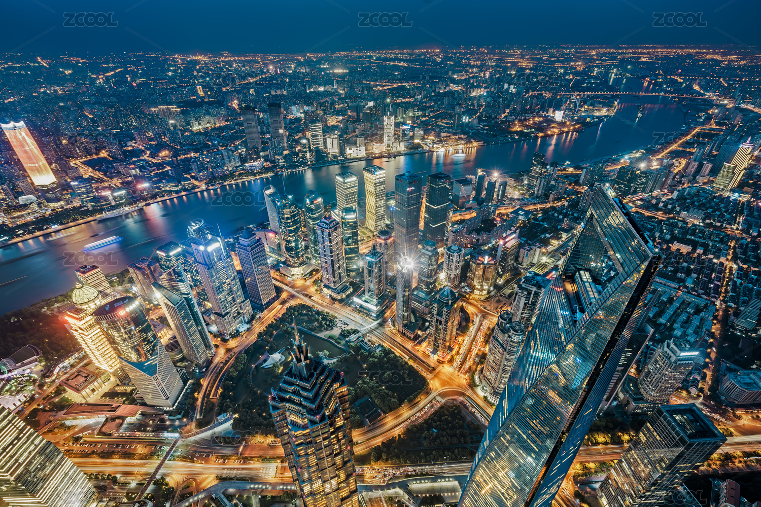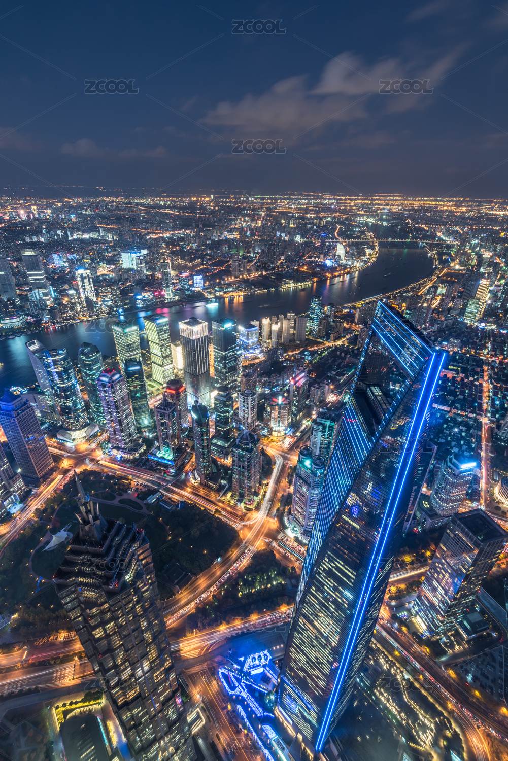 高视角俯瞰中国上海城市夜景
