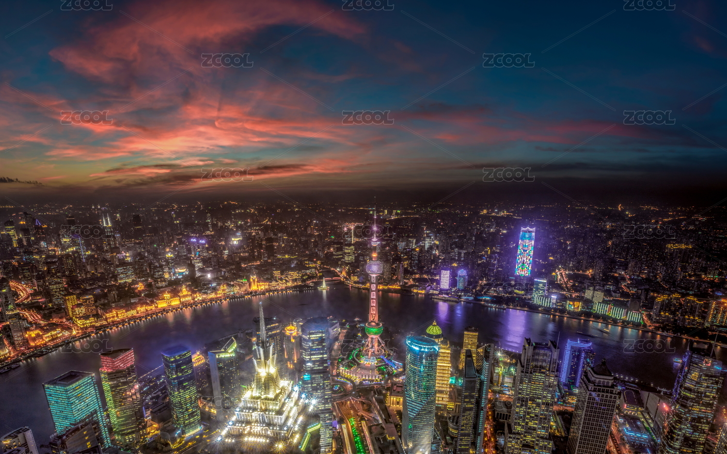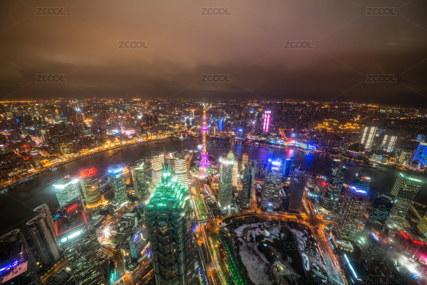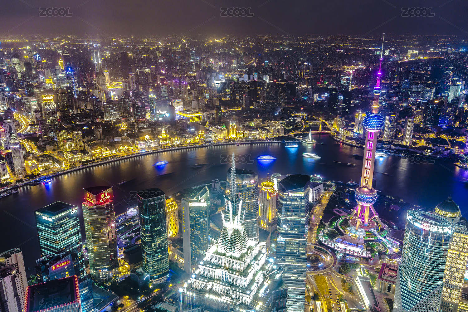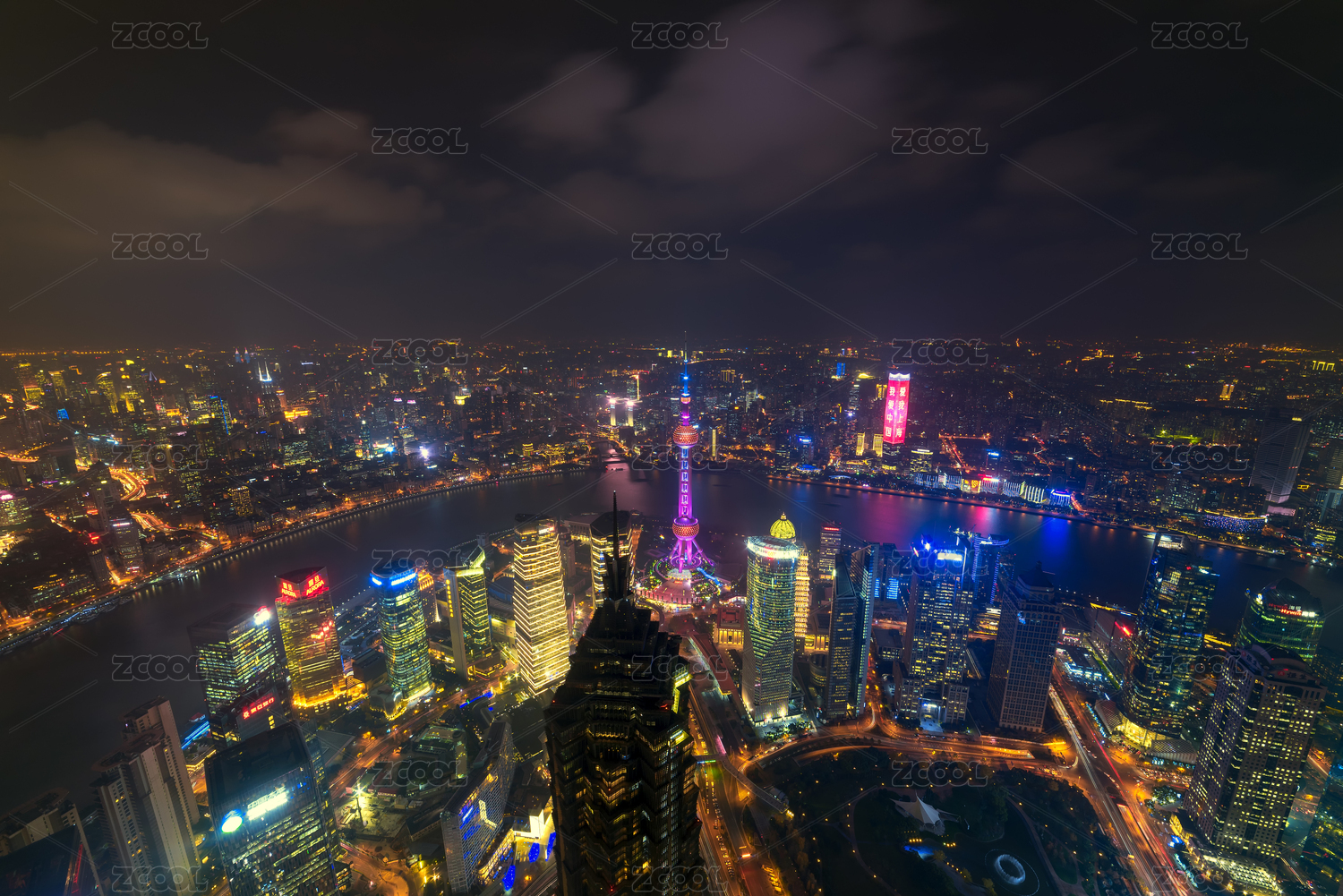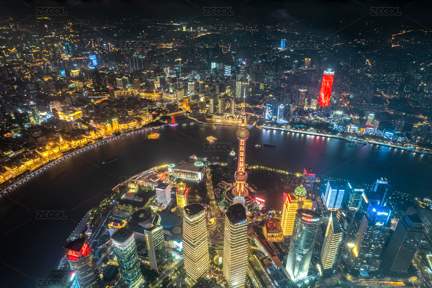 高视角俯瞰中国上海城市夜景