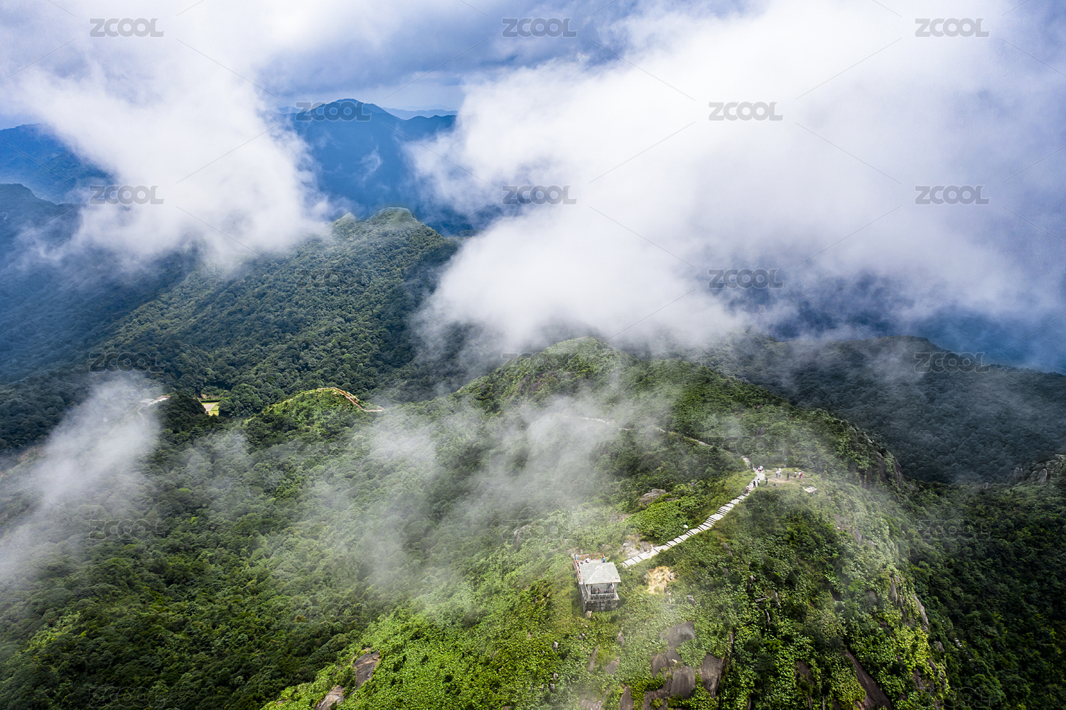 广东省阳江市阳春双滘鸡笼顶风光,大雾笼罩着的山脉