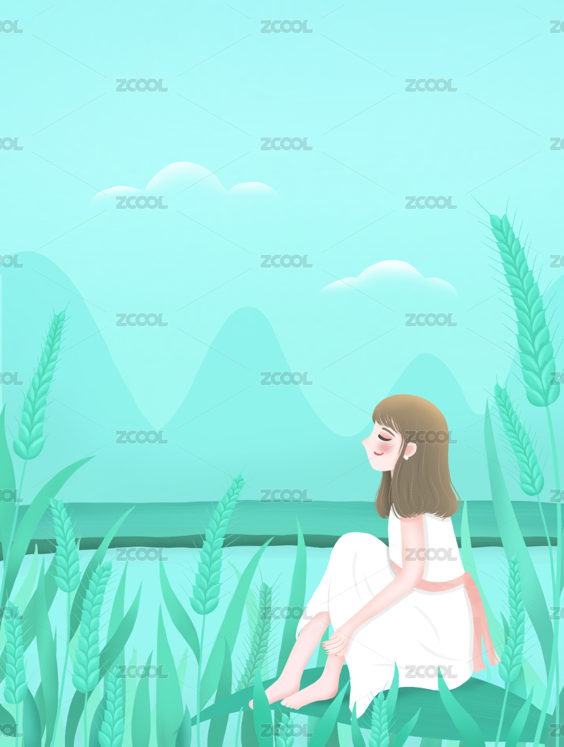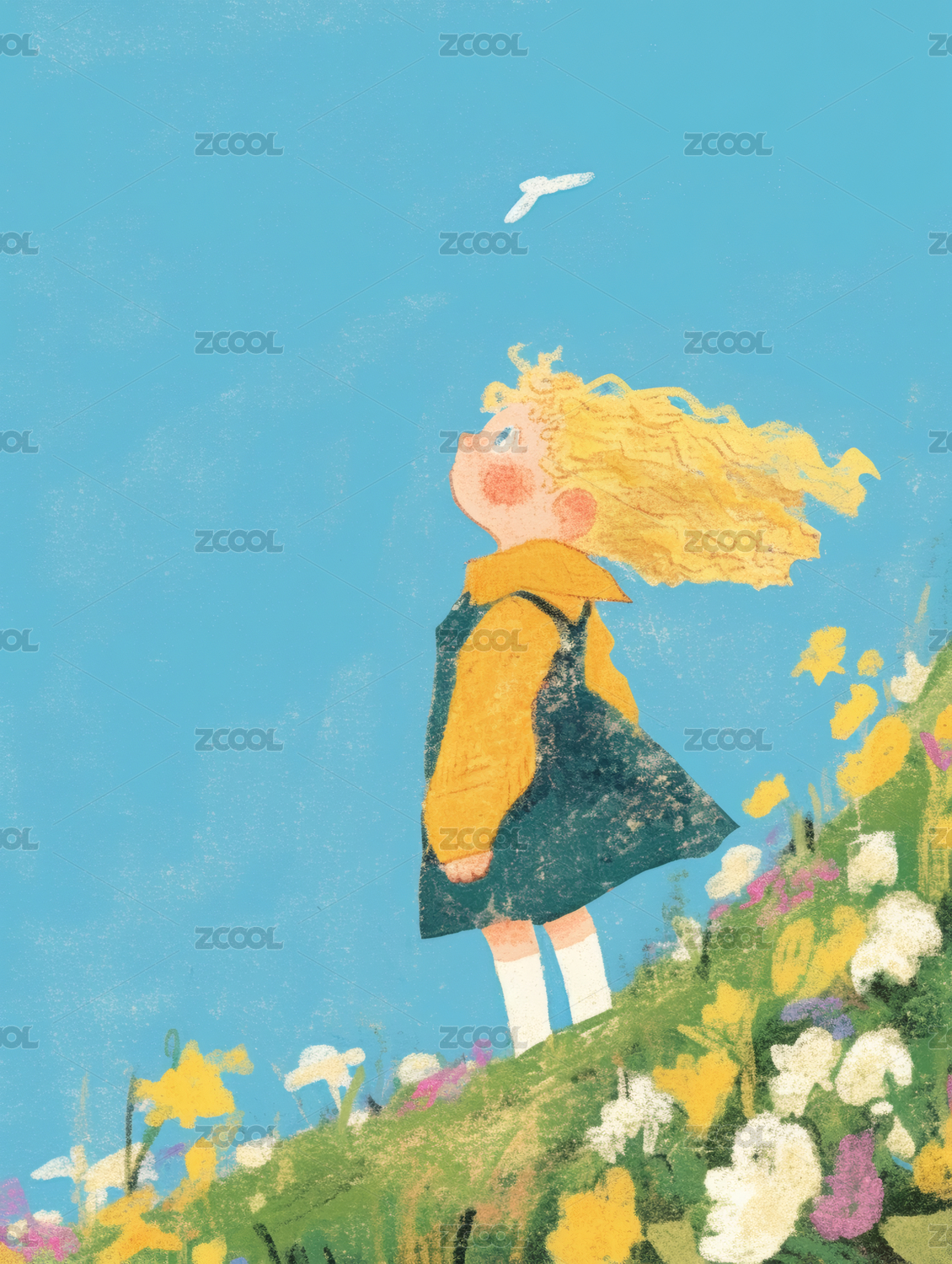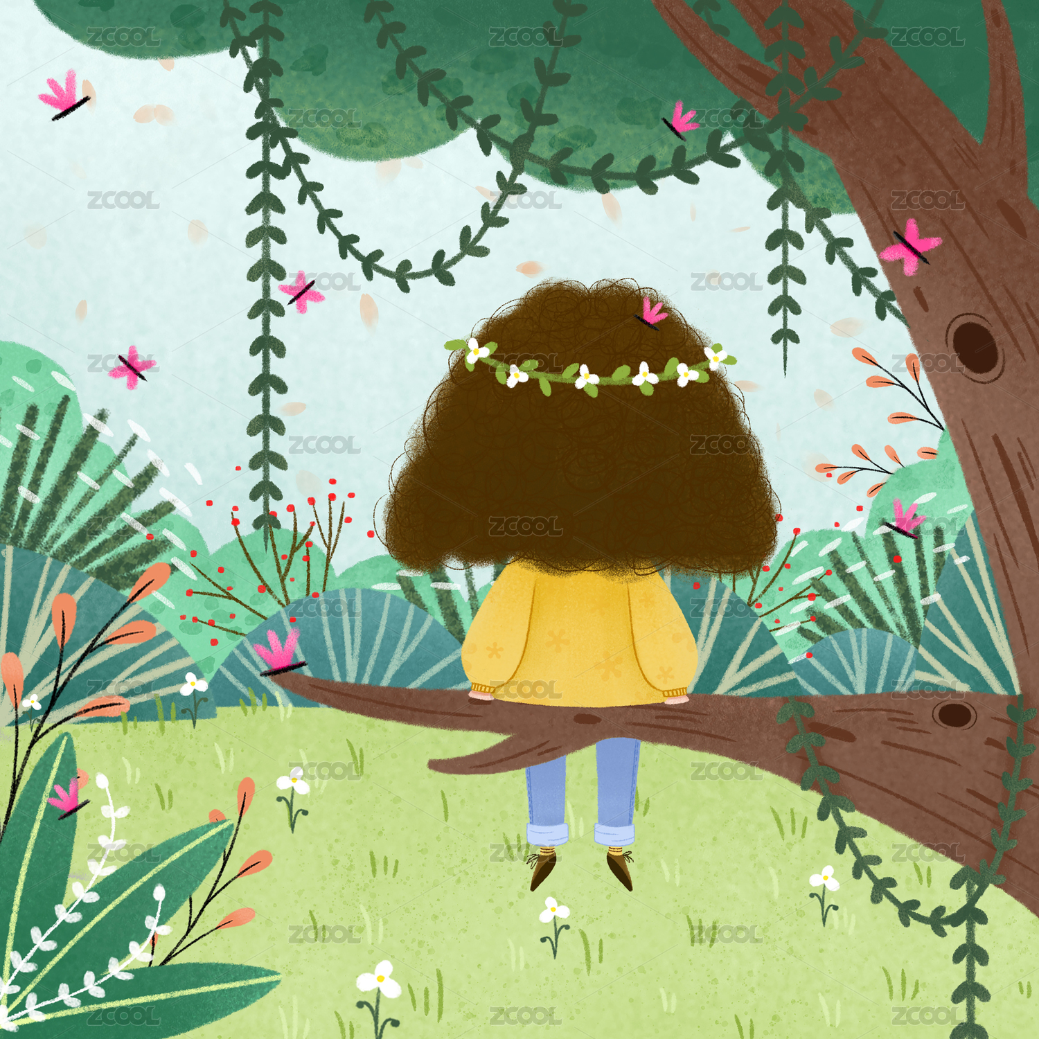 插画,植物,小女孩,插图,动画片,艺术,秋天,冬天,蓝色,红衣少女