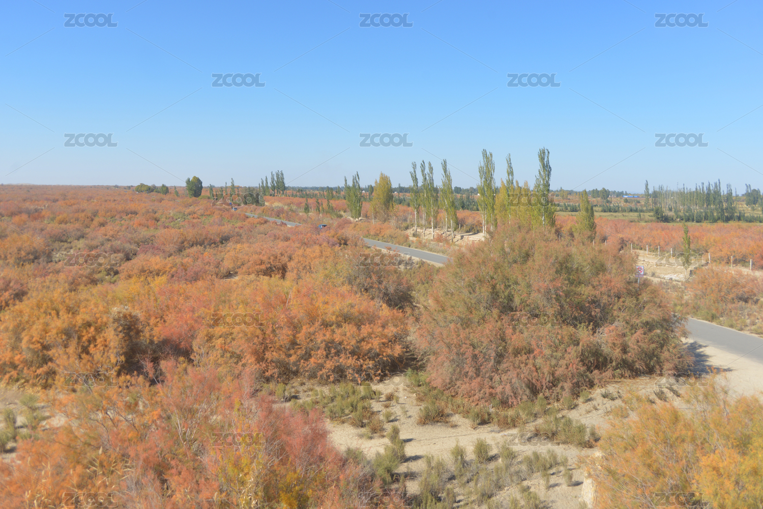 中国甘肃酒泉地区公路沿线柽柳林地俯拍