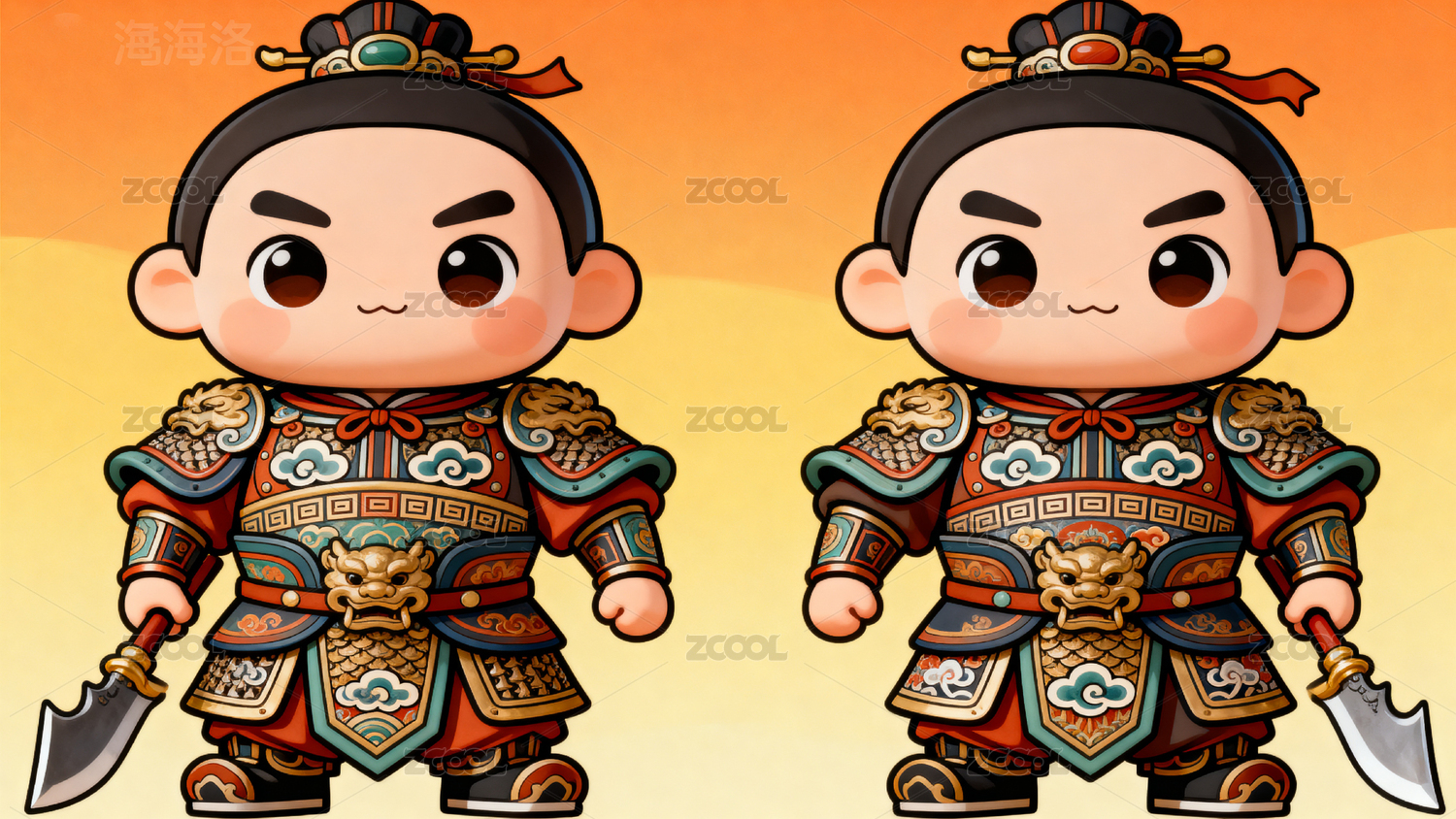 卡通古代武士形象对比