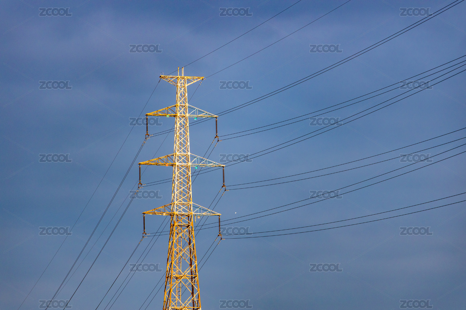蓝天下的输电铁塔